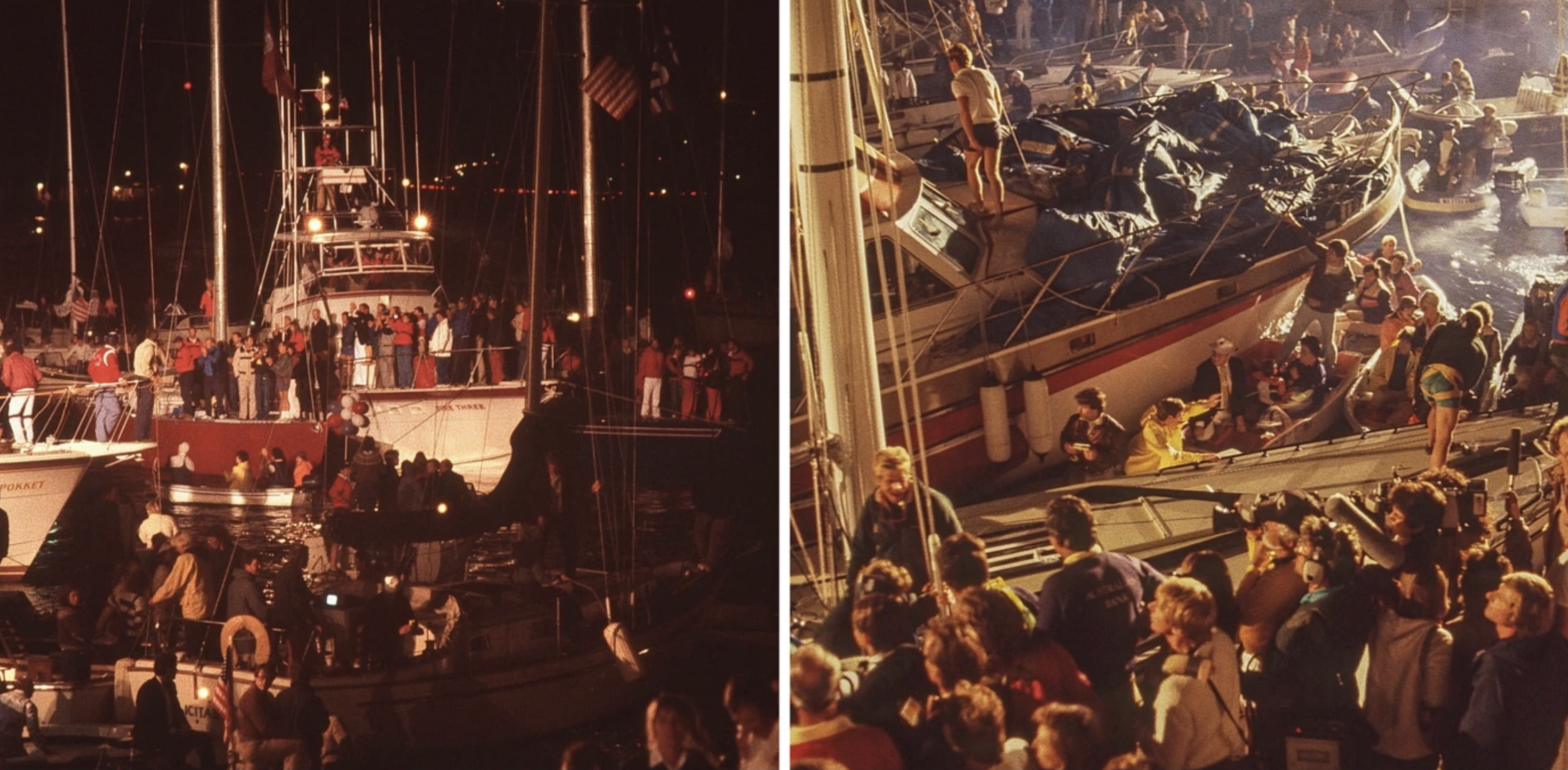 Scenes from the docks after Australia II won the 1983 America’s Cup (Photos by Gilles Martin-Raget)