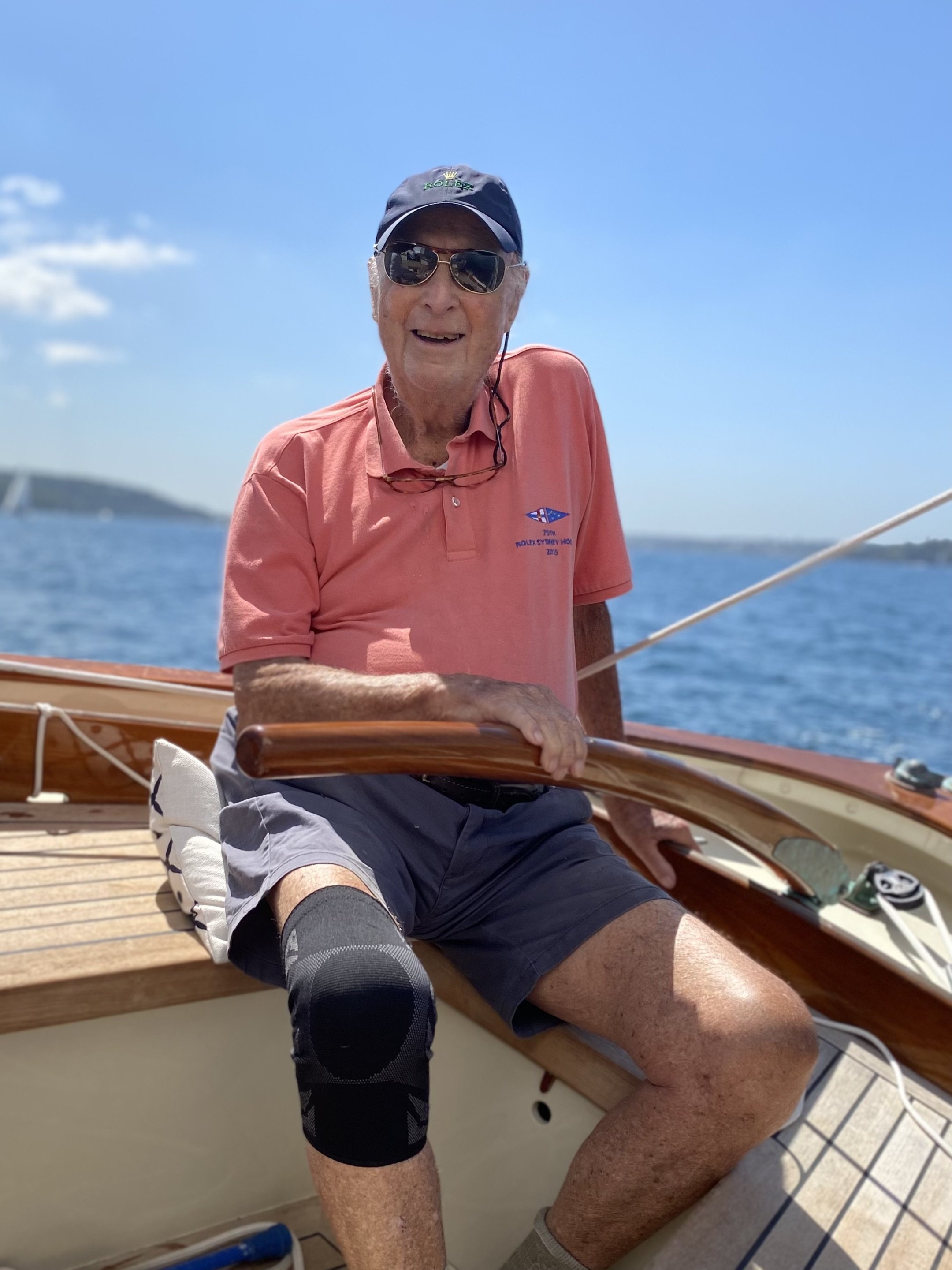 One of CARESS’ current owners, Michael Paull, crewed with the Nocks for close to seven years each Saturday, learning the ways of the boat and proudly taking over custodianship of CARESS in 2020 in partnership with Julian Sexton and David Kenyon. Graham Nock, now an impressive 96 years old, was invited to climb aboard his old yacht after her extensive restoration and spend the day sailing on Sydney Harbour in 2023. His turn at the helm was bittersweet for family and friends who acknowledged that with his encroaching mobility issues this was to be Graham’s last sail. How fitting that this milestone was spent on board his lovely CARESS.