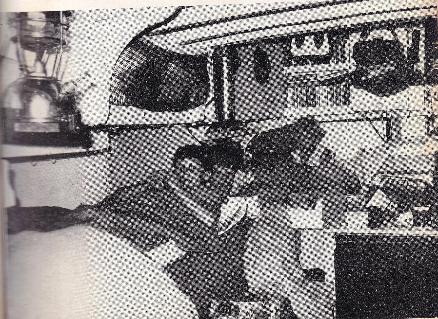 The two older boys were working members of the crew, standing watches and assisting with maintenance and navigation, while the younger two occasionally assisted. They all became resilient and self-confident, making friends in various ports, handling foreign currencies and adapting to local customs.