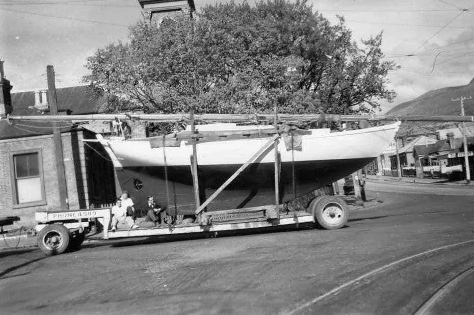 She was built over a two year period by Ron Andrewartha and his two sons, Tom and Bob at 83A Letitia Street, North Hobart and was launched at Franklin Wharf by the old steam crane in September 1950.