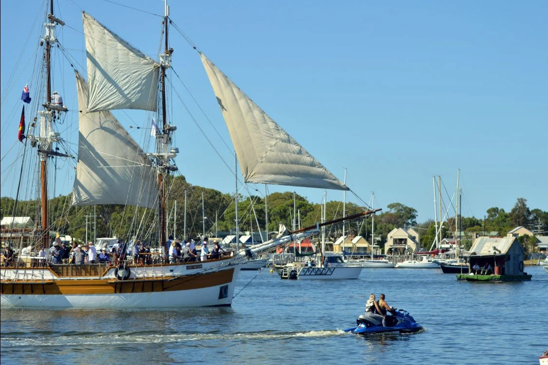 The Grand Parade, led by the drum of dragon boats and the sails of a tall ship, invites all boats to the water, spiriting all vessels past a crowd of thousands waving from the foreshore.