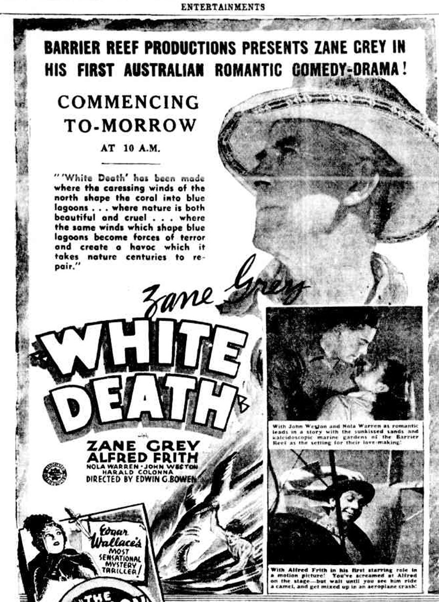 For weeks, at a cost of £600 daily, Mr. Grey threw out the most enticing baits he could devise. But a giant “White Death” – that had devoured three people according to the film script – wouldn’t play ball. In desperation one of the film producers decided on a "stand-in" shark. A giant rubber shark was made in Sydney and, in a deflated state, flown to Zane Grey.