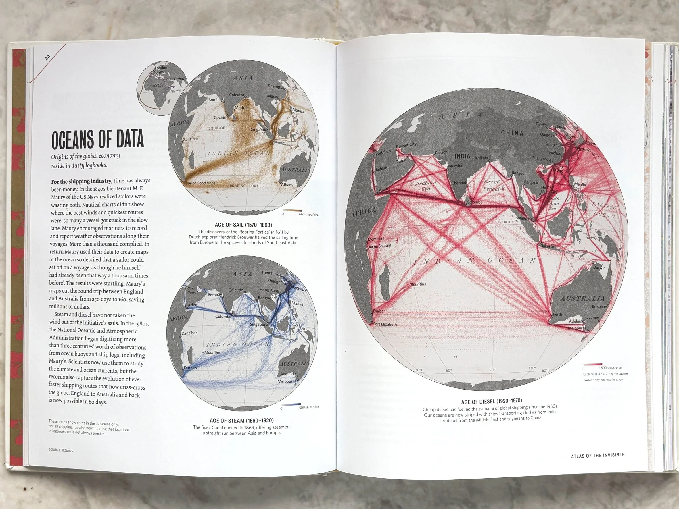 I love a good map.. and these ones are next level, uncovering patterns that govern our environment and society. Its particular strength lies in its ability to show things that are hard to see, yet profoundly affect us, such as economic flows, environmental changes, and social inequalities.