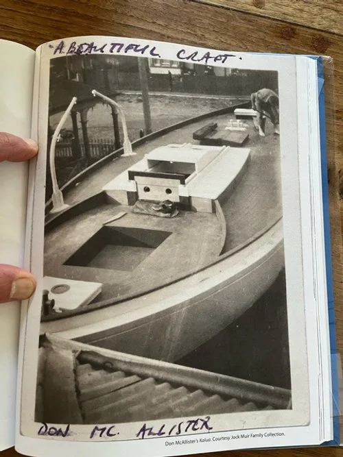 KALUA 38 ft ketch built over five years at Battery Point, Hobart, Tasmania during the Second World War and launched in 1944. Owner/builder Don McAllister - the brother-in-law of Jock Muir. Originally intended as a fishing boat based on a Norwegian double-ended design. Hull planking was Huon Pine.