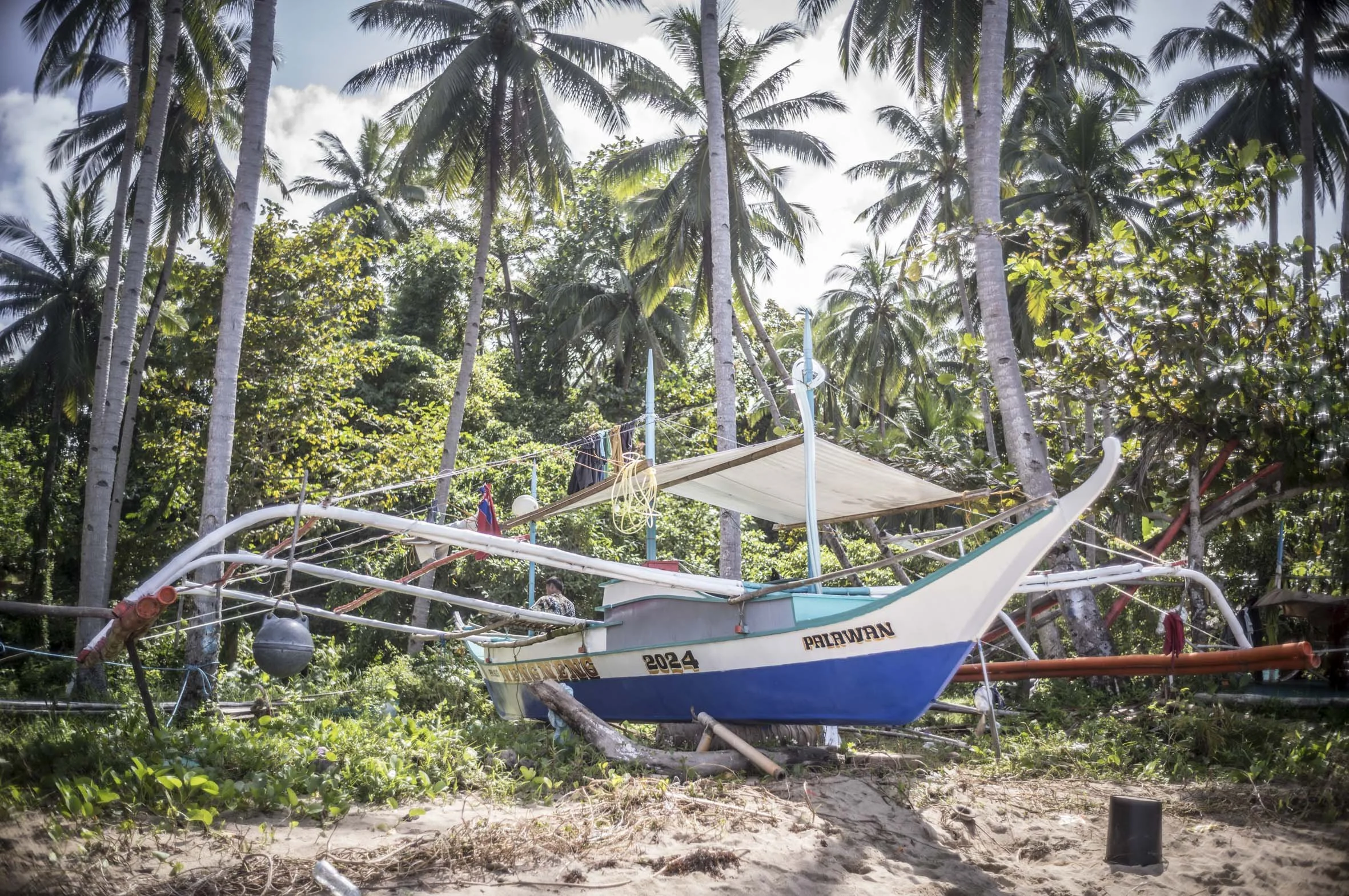 At ten degrees north of the equator, the sun sets at close to six o’clock every night. In the remains of the fast-vanishing light, a haze of woodsmoke drifts down the beach as a fisherman paddles a tiny outrigger back through the small surf after loading a larger Banka for a night of fishing off palawan’s west coast.