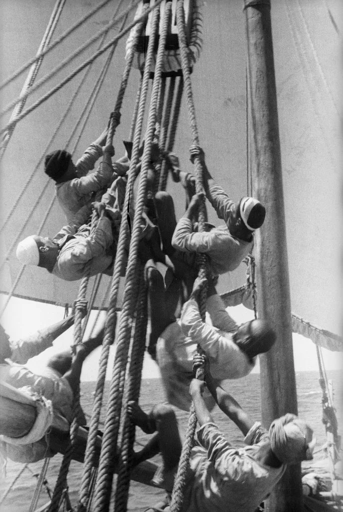 Supporting Villiers prolific story telling there is a substantial record of his extraordinary photography. Most of it seems to be held by the National Maritime Museum in Greenwich, London. You can a rich half an hour browsing the collection here. We take so much for granted nowadays with light, automatic, high-definition cameras in every pocket and handbag in the developed world, but in viewing these images remeber that Villiers like that another great adventurer Frank Hurley was dealing with unwieldy equipment, erratic and slow reacting film stocks, and the vagaries of silver halide development in climactic conditions that could make reliable chemistry a lottery. (click to enlarge)