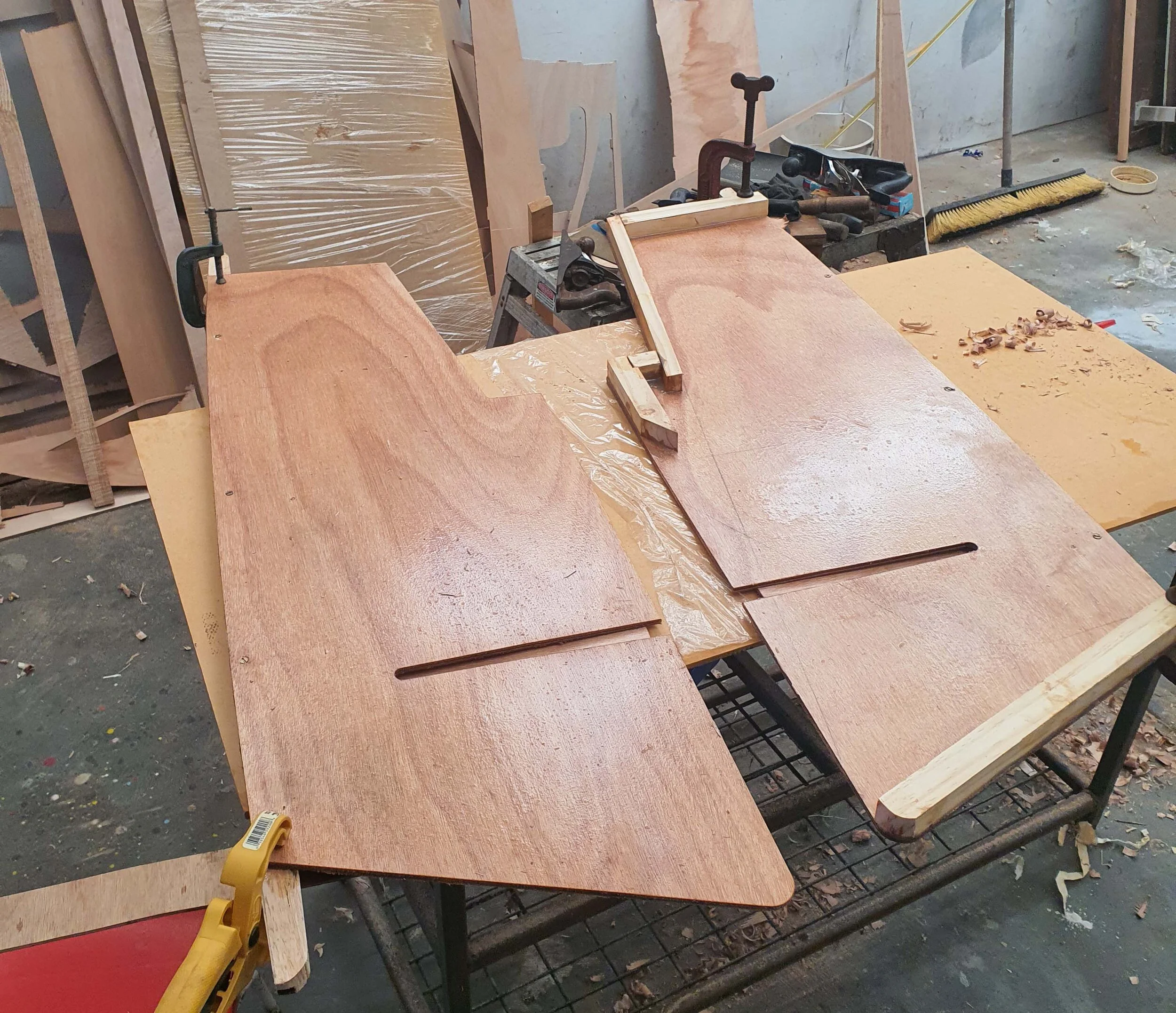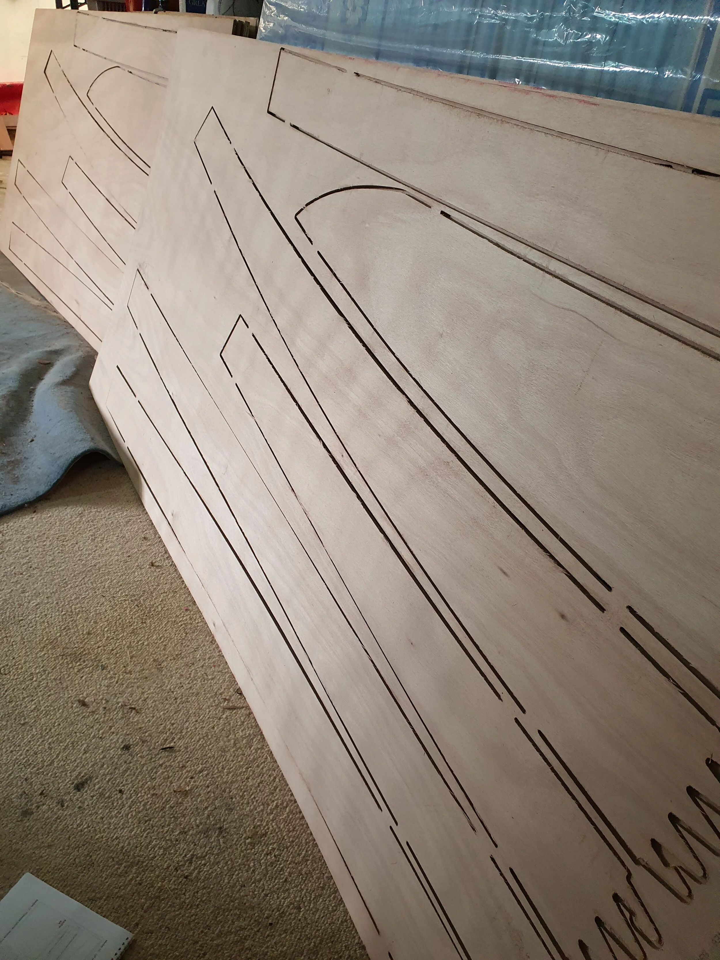O’Connor Wooden Boats uses a CNC machine to cut the plywood and supplies the boat as a kit. All you do is the final cut out of the bits, glue them together and slap on a coat of varnish. Simple.