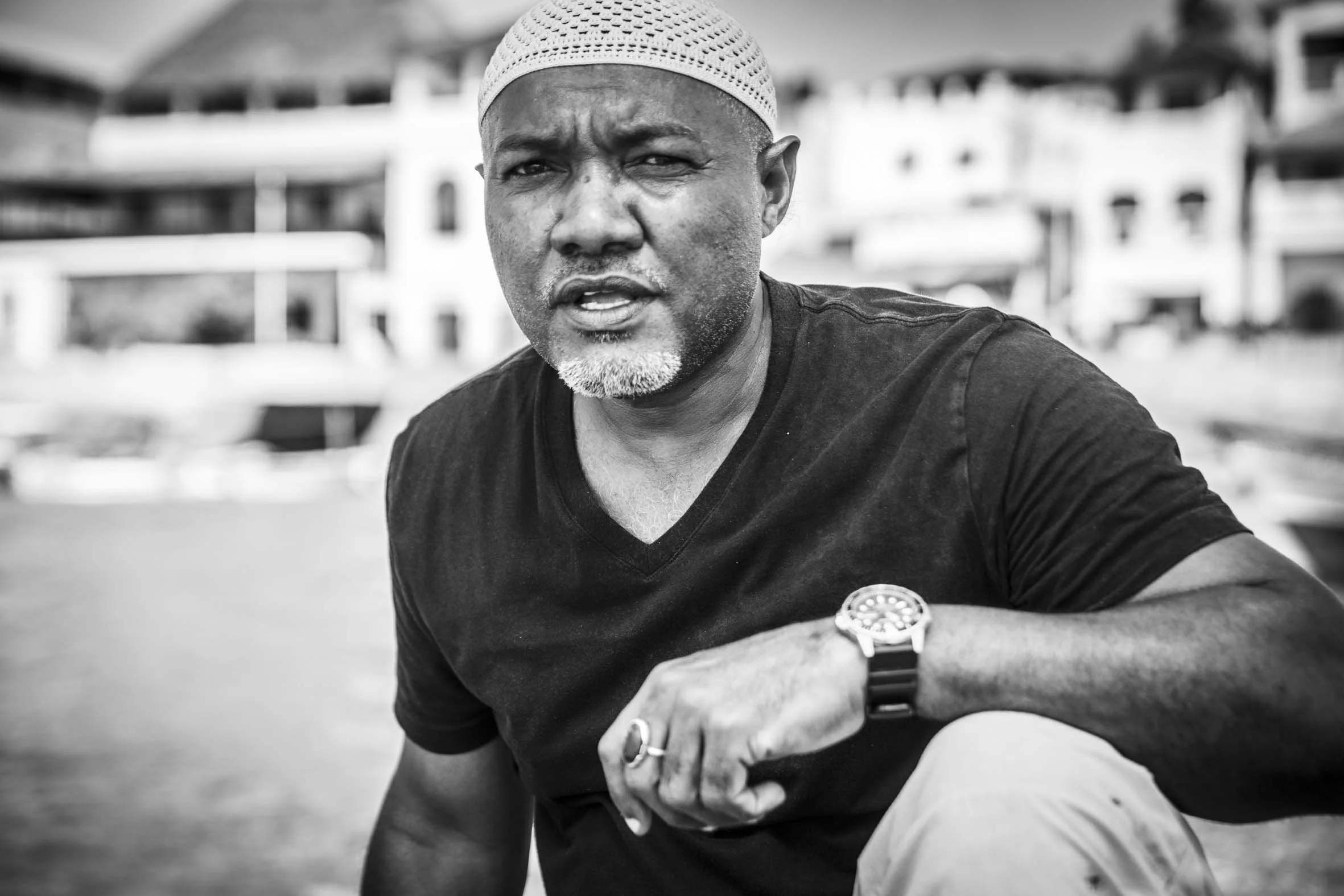 As we walked north up coast from the 200 year old Fort , and I noticed the TUSITIRI lying gently healed over on the sand, on her port side with her starboard hull freshly painted. Her rudder had been removed and she was obviously being tidied up for the coming season. As I admired the dhow, a warm faced man sidled up and started chatting. He was wearing a kufi, the round and brimless hat loved by so many Muslim men, and given his quiet smiling confidence, I felt an immediate rapport. Here was a man from a culture so different from my own, who love wooden boats in the same way as me, for the same reasons.