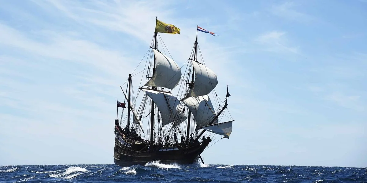 DUYFKEN—Little Dove—was 80 feet long, shoal draft and carvel planked. She had three masts and a total of six working sails. She was fast, sturdy and had a relatively small crew of 20. Her design was a “jacht," which in 16th century Holland meant “hunter” or “pursuer."