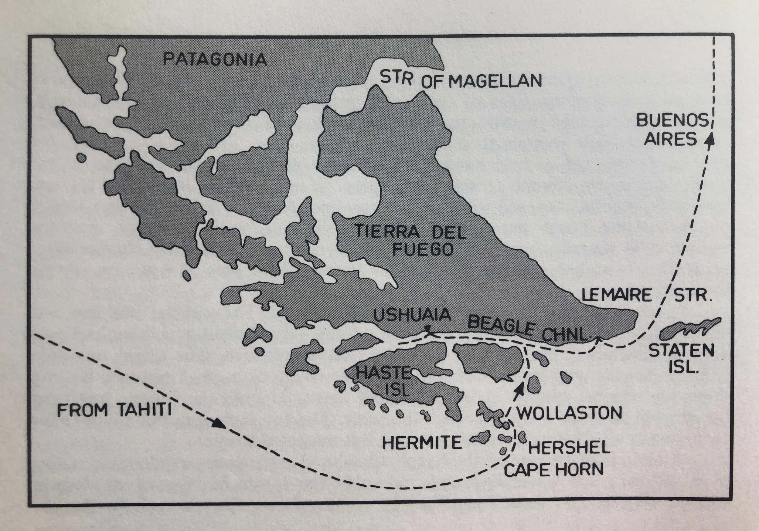 In our fourth and final (for the moment) article on the amazing craft that amateur designer Wally Ward drew, we reproduce a fascinating account of the second part of CARRONADE’s ocean voyage across the pacific and around Cape Horn. Although the “CA” designs are most fondly remembered in Australia for their outstanding racing results, this passage highlights, that with a competent crew, unafraid of a little discomfort, and with a raging sense of adventure, these lightweight, revolutionary little craft could safely cruise the world’s oceans. The story below is written by Des Kearns and is taken from a 1969 anthology called “Force Nine and More”