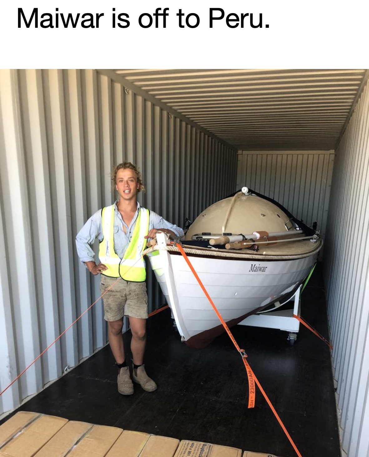MAIWAR the boat he has designed and built to cross the Pacific represents the culmination of years of thought about the ideal ocean rowing vessel. Her lines are based on those of the whaleboats that accompanied whaling ships that frequented the Pacific in the 19th and 20th centuries.