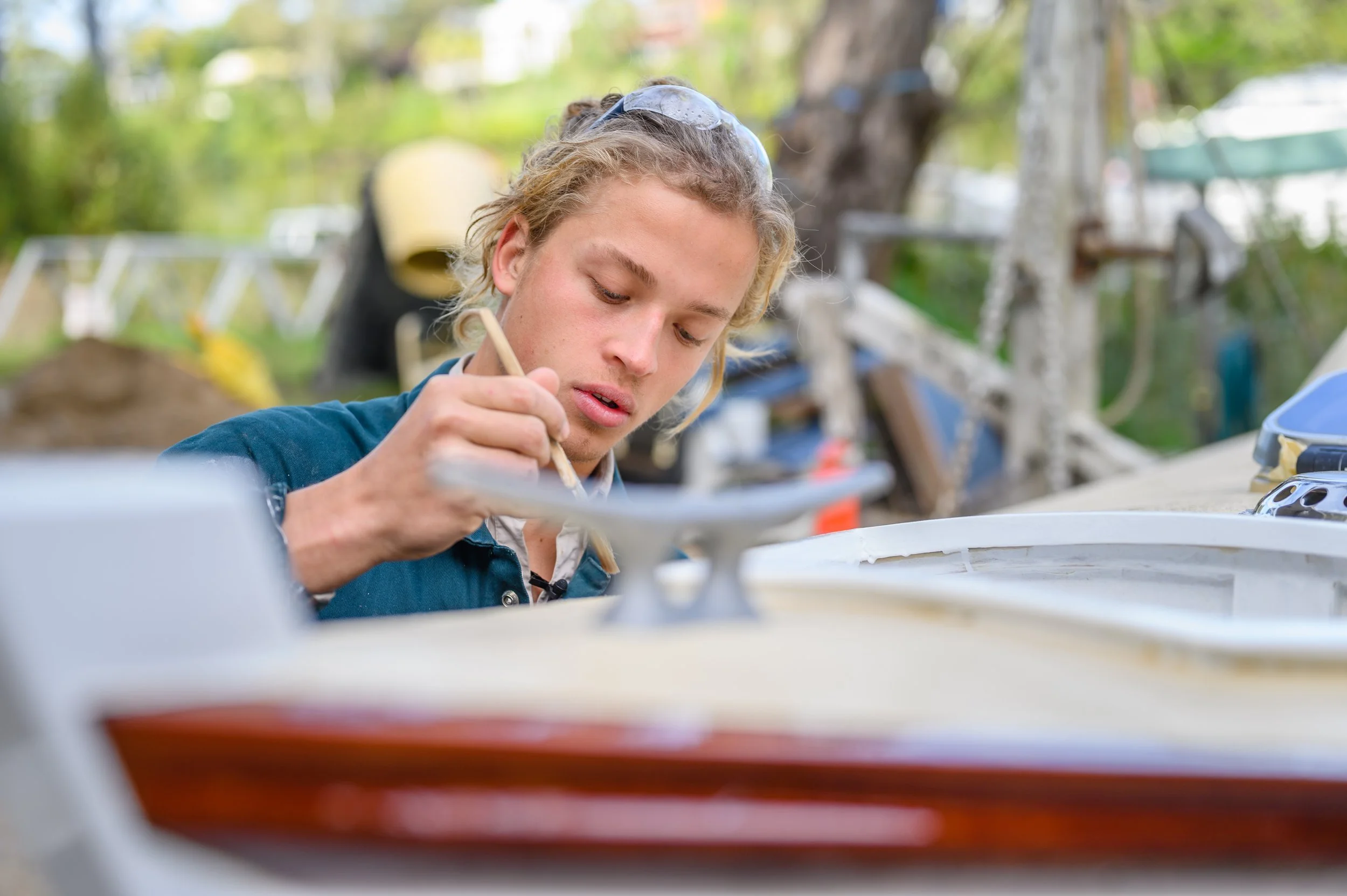 Tom spent his next year exploring the boatyards of Brisbane, working unpaid on his school holidays. During Tom’s final years at high school, work kept Tom very busy, there was always an old bloke who wanted his boat painted, or a new home being built that could use a labourer. Tom also worked as a deckhand aboard a commercial passenger vessel (his first ‘proper’ job).