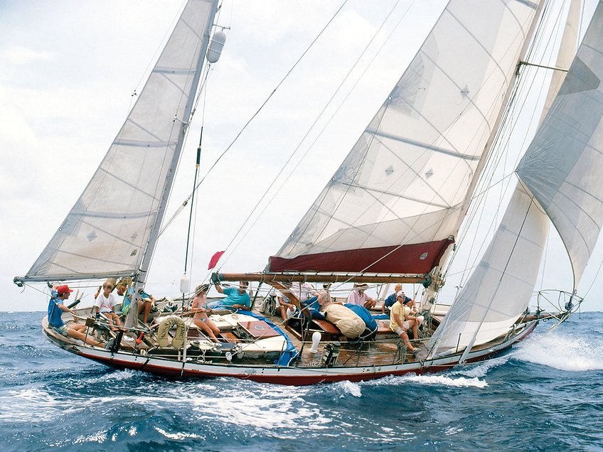 The magic scene observed at Street level - Iolaire racing with the Street family (in three generations) and friends at Antigua Week 1990