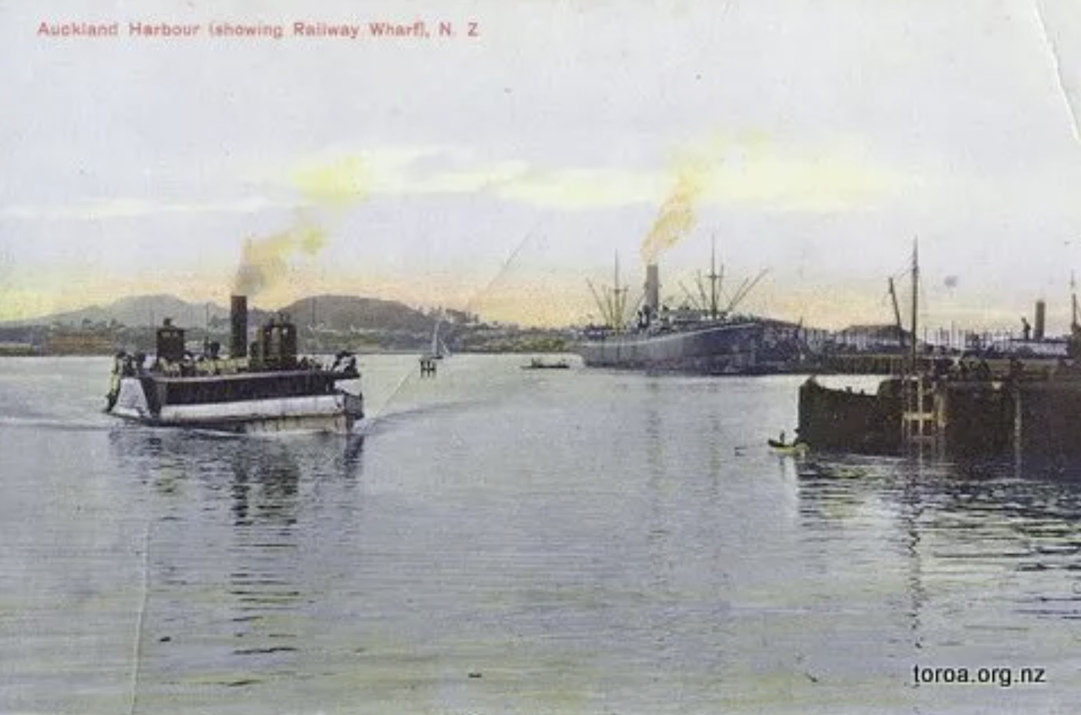 The first steam ferry on the Waitematā, the Australian-built EMU, began work in 1860 and sank off Motutapu the same year. But steam was unstoppable—steamer after paddle-steamer; company after ferry company. The paddle-steamers-among them TAKAPUNA, TAINUI, CITY OF CORK, TONGARIRO, VICTORIA, ALEXANDRA, BIRKENHEAD, BRITANNIA, EAGLE and OSPREY—were nearly all side-wheeler double-enders with a rudder and a steering wheel at each end. They were two-decked, most with at best an awning for the shelter of the upper-deck passengers. Smaller ferries catered for the upper Waitemata, as far as Riverhead. Several companies were involved, but by the end of the 1880s many of the services had been absorbed by the Alison family’s Devonport Steam Ferry Company.