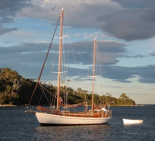 At the last Australian Wooden Boat Festival the “Boats Afloat” team arranged the vessels thematically. This was lucky for me, as we owned the Philip Rhodes designed FAIR WINDS and the boat parked next to us was also a Philip Rhodes design, called SAONA. My good fortune came not so much from the two designs being side by side, but because I got to spend a little more time with one of the true gentlemen of the Australian Wooden Boat World. Ben Marris, custodian of SAONA for the last 30 years was quietly spoken, self deprecating, and above all generous with his incredible knowledge and experience. I would be untue to say I knew him well. But we corresponded and shared stories around our boating overlaps, which always made me smile.