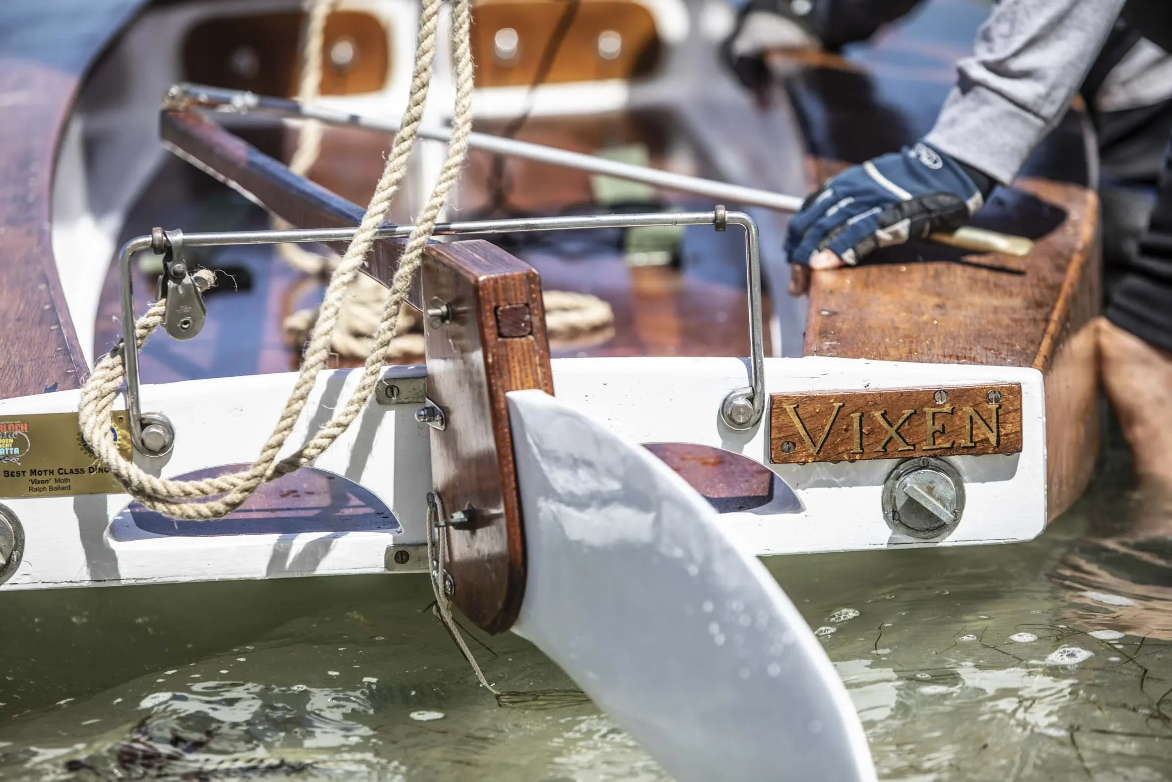 In the years that followed, the boat underwent a significant restoration, initiated by woodworker and sailor Ben Gray in collaboration with the Walker family. Determined to preserve her authenticity, Gray tracked down the original builder, Doug Brooker, as well as the mast builder and sailmaker who had worked on her in 1980. The restoration involved meticulous structural work, replacing sections of hull and deck timber affected by rot — particularly around the transom and mast step — while keeping her original lines intact. She was relaunched in 2022, restored to her former glory but subtly modernised for longevity and safety.
