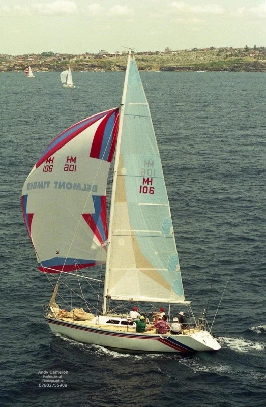 John Walker, who came to yacht racing later in life — he was already sixty when he commissioned IMPECCABLE — campaigned her with remarkable dedication and success. Over a career spanning decades, Walker entered IMPECCABLE in an extraordinary twenty-five editions of the Sydney Hobart. Among her best results were a division win in 1986 and another in 1993; she also placed second overall in 1986 and third in 1993 in the prestigious Tattersall’s Cup handicap results.