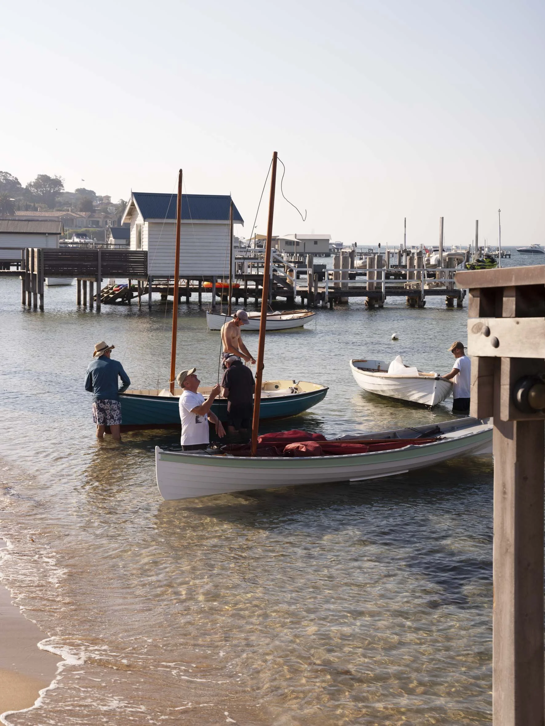 Its a very low key event held on the beach at Sorrento to the west of the launching ramp. It's more of a family gathering, based around the extended Wooden Boatshop family. The Phillips boat shed opens onto the beach providing a vantage point and shade to keep the ice boxes cool. The dinghies are rowed or sailed and anchored ready for the rowing and sailing races later in the day.