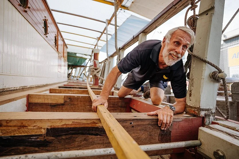 Peter Harris aboard the Alma Doepel