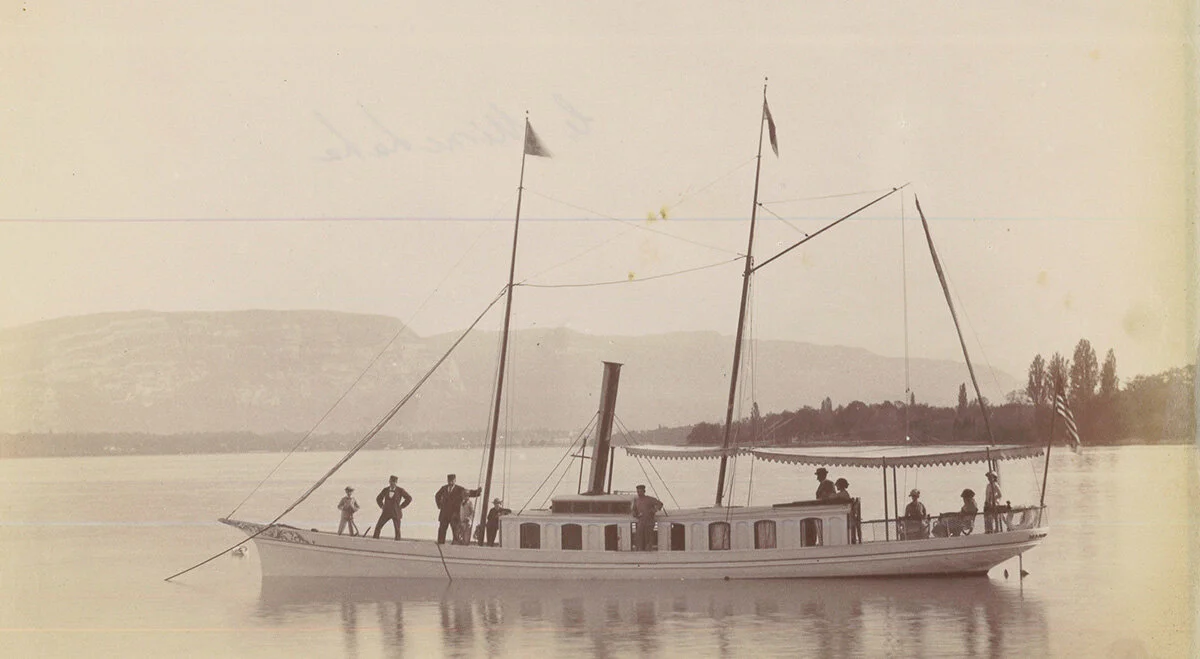 Helene was born in New York as Helen Barbey. Her father, Henry Barbey was Swiss and made a fortune investing in railroads. Her mother, Mary Lorillard was heir to a tobacco empire. The Barbey family lived in New York and spent summers on Lake Geneva boating and sailing. Henry even shipped a steamer, the Minnehaha from America to Lake Geneva for the family to enjoy. In 1891, Helen married Hermann Alexandre, Count de Pourtalès and son of an old Huguenot family. She stipulated any husband must be a sailor and together they regularly competed on Lake Geneva and at Cannes where they also owned a villa.