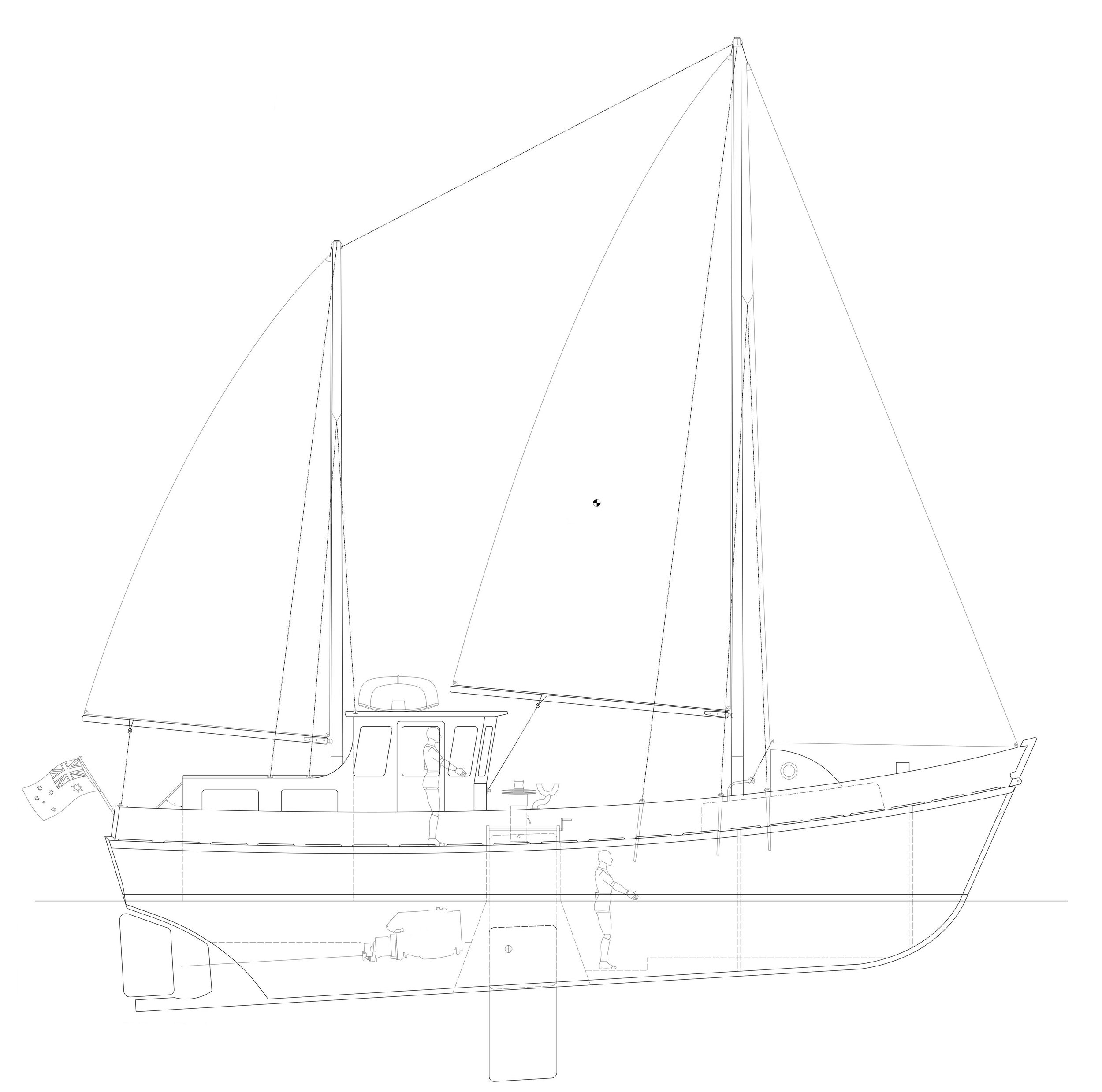 Built in 1977 by renowned local boatbuilder Jack Pompei, Pisces is a 46’ shark fishing boat. The plans were informed by legendary boatbuilder and designer Ken Lacco. She is generally considered to be a sister ship to the Ken Lacco designed, Garry Stewart built Jane Kerr. Jane Kerr is just 2’ longer than Pisces and was built as a crayfishing boat for Garry Kerr in Portland in 1981.