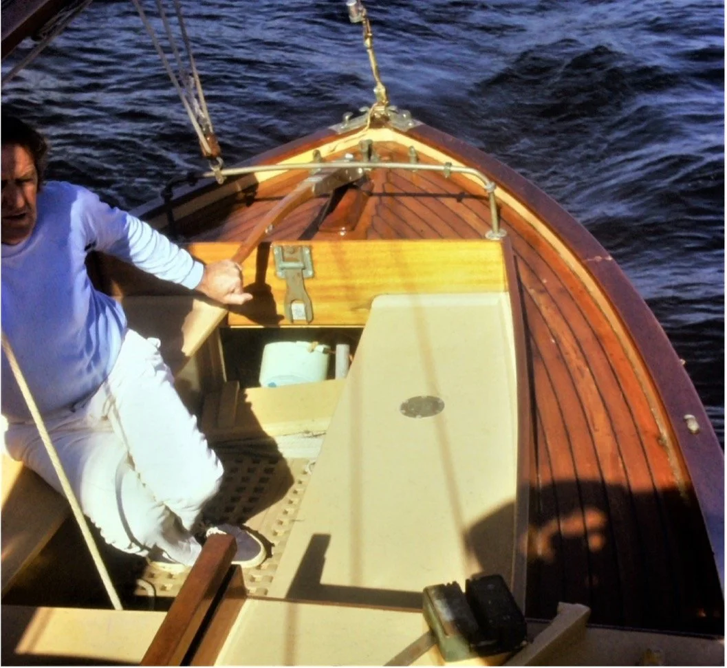 In 1960 John modified the rig and keel, adding more sail area, with an overlapping genoa, hydraulic winches, folding/locking propeller and other innovations. He raced competitively and successfully for many years, with a formidable reputation as one of the scratch boats in the fleet. It was this success which later caught the eye of builder Ron Swanson.