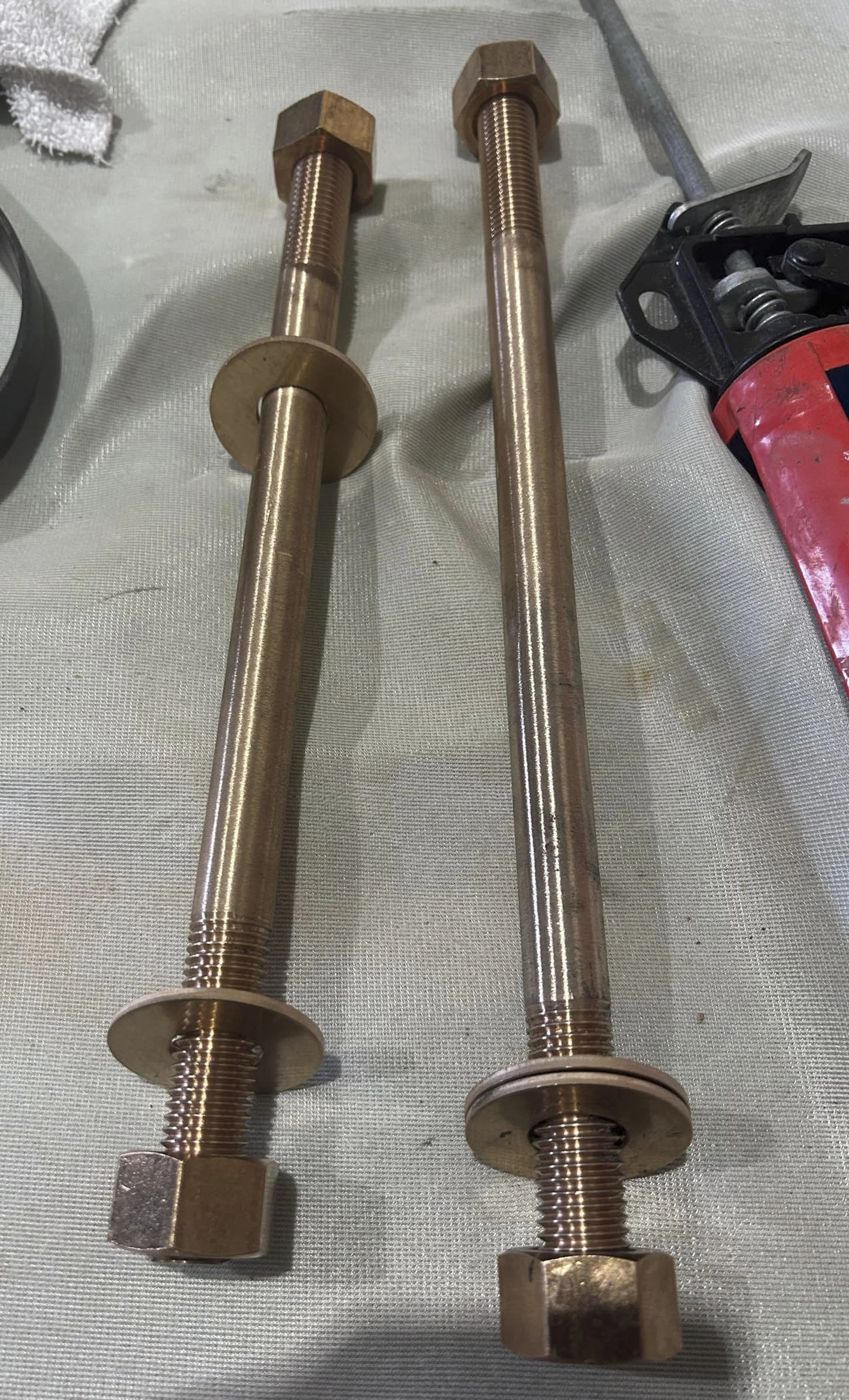 The existing silicon bronze bolts were as specified by Sparkman and Stevens at build as confirmed by one of the build team (thanks Rohan)