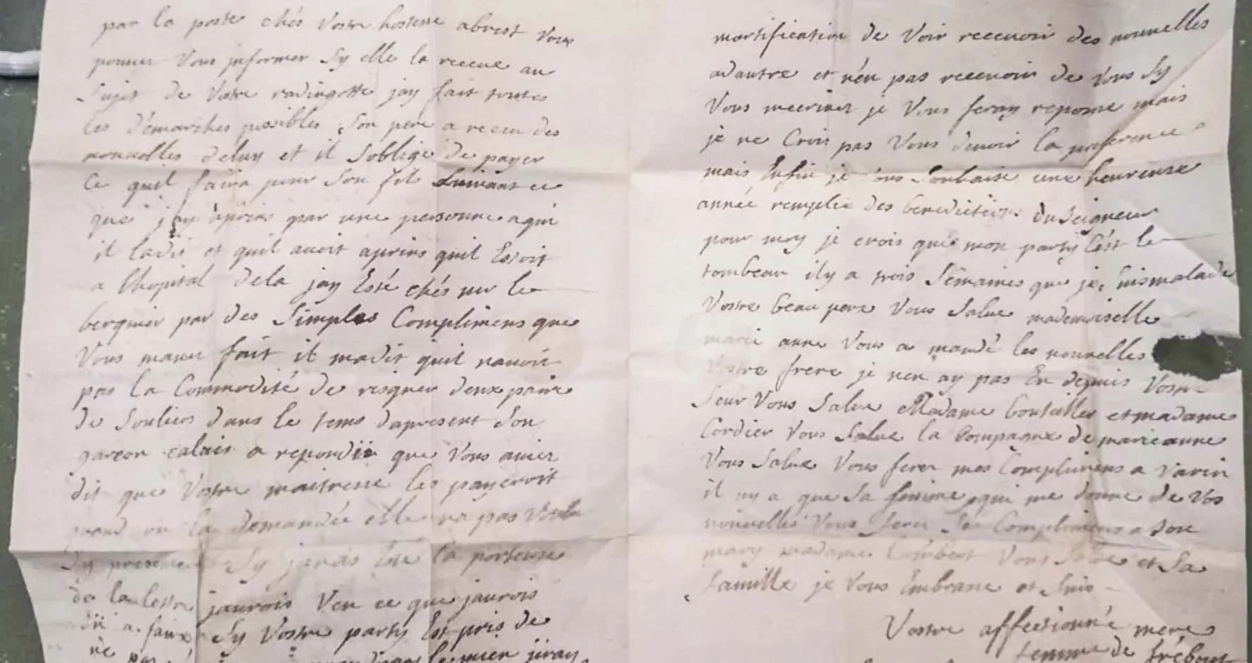 Nicolas Quesnel's mother asked him to "give my compliments to Varin [a shipmate]; it is only his wife who gives me your news" -THE NATIONAL ARCHIVES/RENAUD MORIEUX