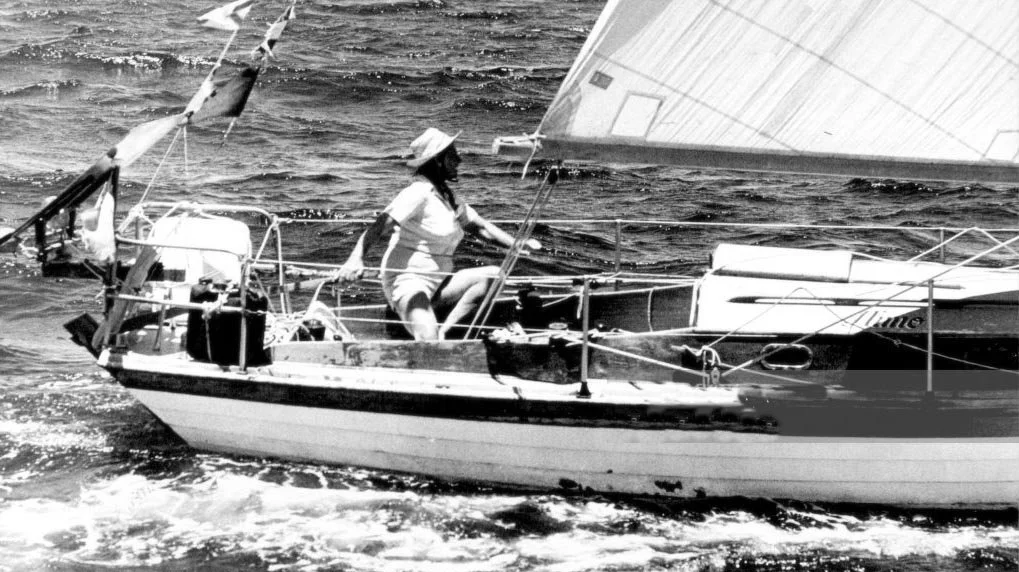 Anne Gash aboard her tiny Folkboat ILLIMO