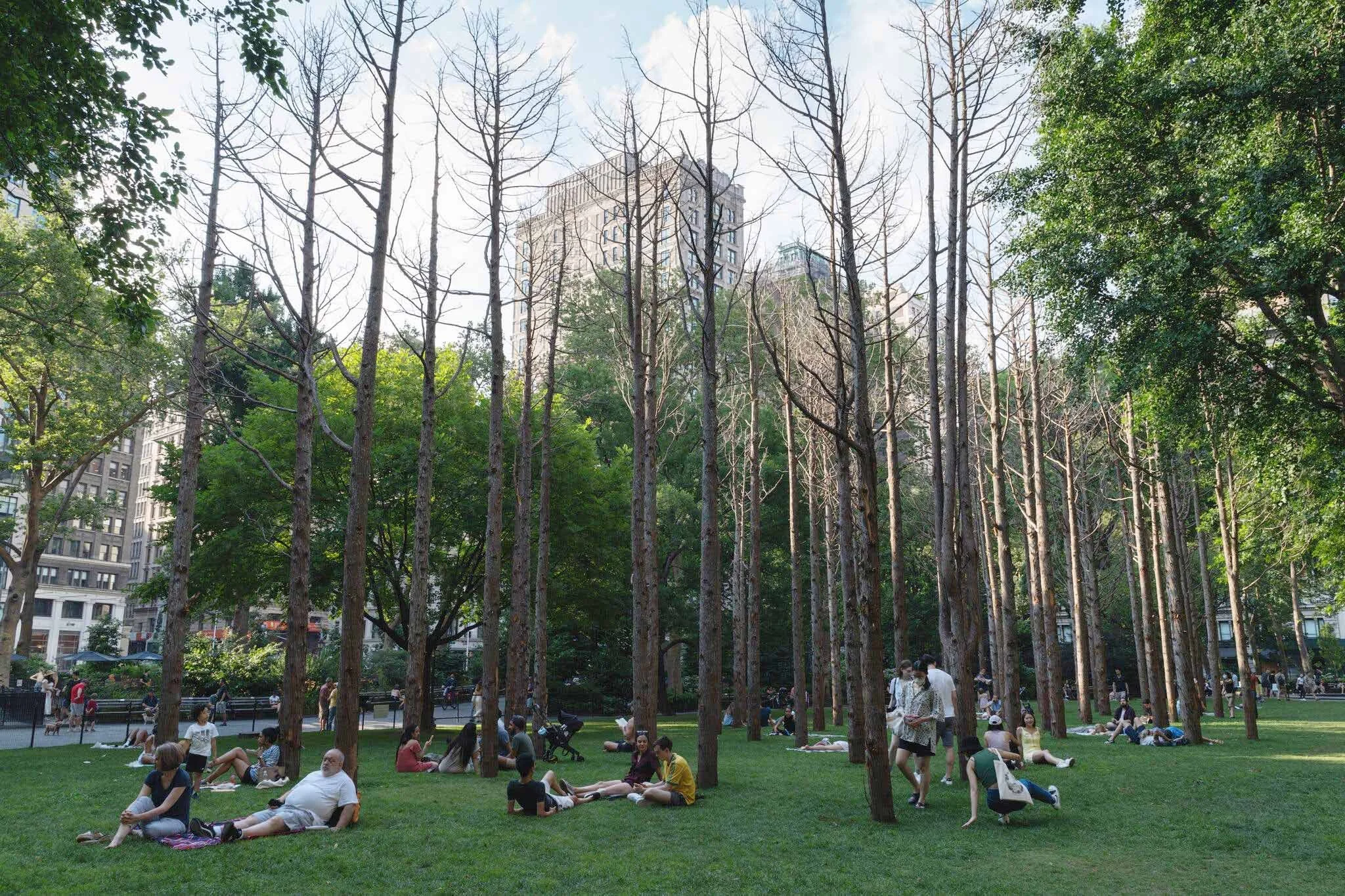 Maya Lin’s “Ghost Forest” at Madison Square Park, over the summer. “The boats are engaging and part of a new life for the artwork,” she said.Credit...Madeline Cass for The New York Times