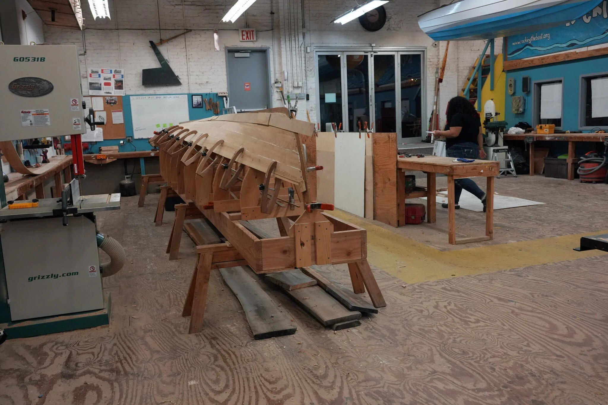 A boat in progress, at Rocking the Boat. “Our role is connecting the neighborhood to the water,” the organization’s founder, Adam Green, said.Credit...Michelle V. Agins/The New York Times