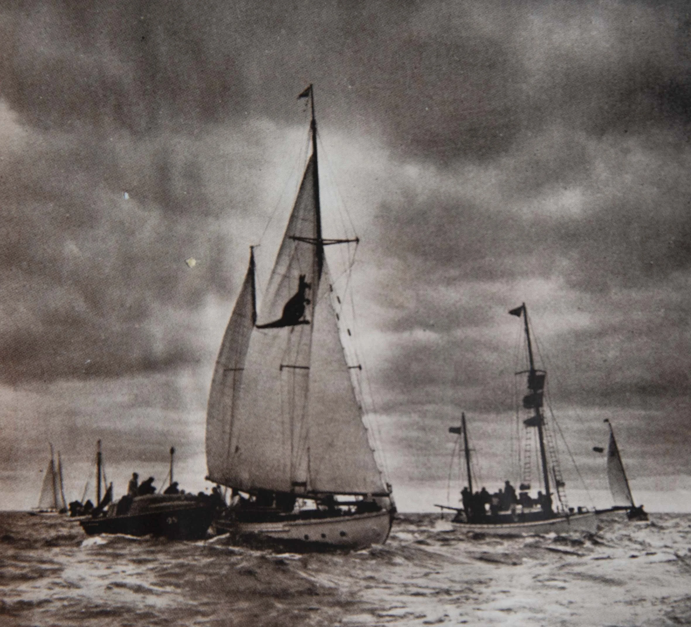 However, the luck of the KURRAWA III held the skipper ordered the crew to down sail and to set out 60 fathoms of line in an effort to steady the craft in the terrific seas.