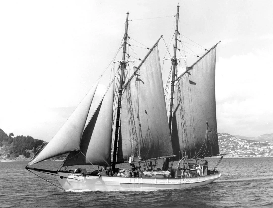 The 90ft topsail schooner Derwent Hunter was constructed by prominent Tasmanian builder Walter Wilson at Port Cygnet in 1946. It was built for use as a local fishing vessel that provided catch to a restaurant at Wrest Point. When Derwent Hunter was purchased in 1950 under the newly formed CSIRO Division of Fisheries and Oceanography it became Australia’s first oceanographic research vessel. Throughout its time at CSIRO it undertook a unique combination of fisheries and oceanographic work. As F.R.V Derwent Hunter it contributed in areas of oceanographic instrument testing, undertook pioneering research on barracouta, plankton and school shark species, and achieved successes in the fishing practice of longlining. As an eco-tourism vessel in the Whitsunday’s Derwent Hunter has continued to incorporate to its own legacy of scientific research and conservation.