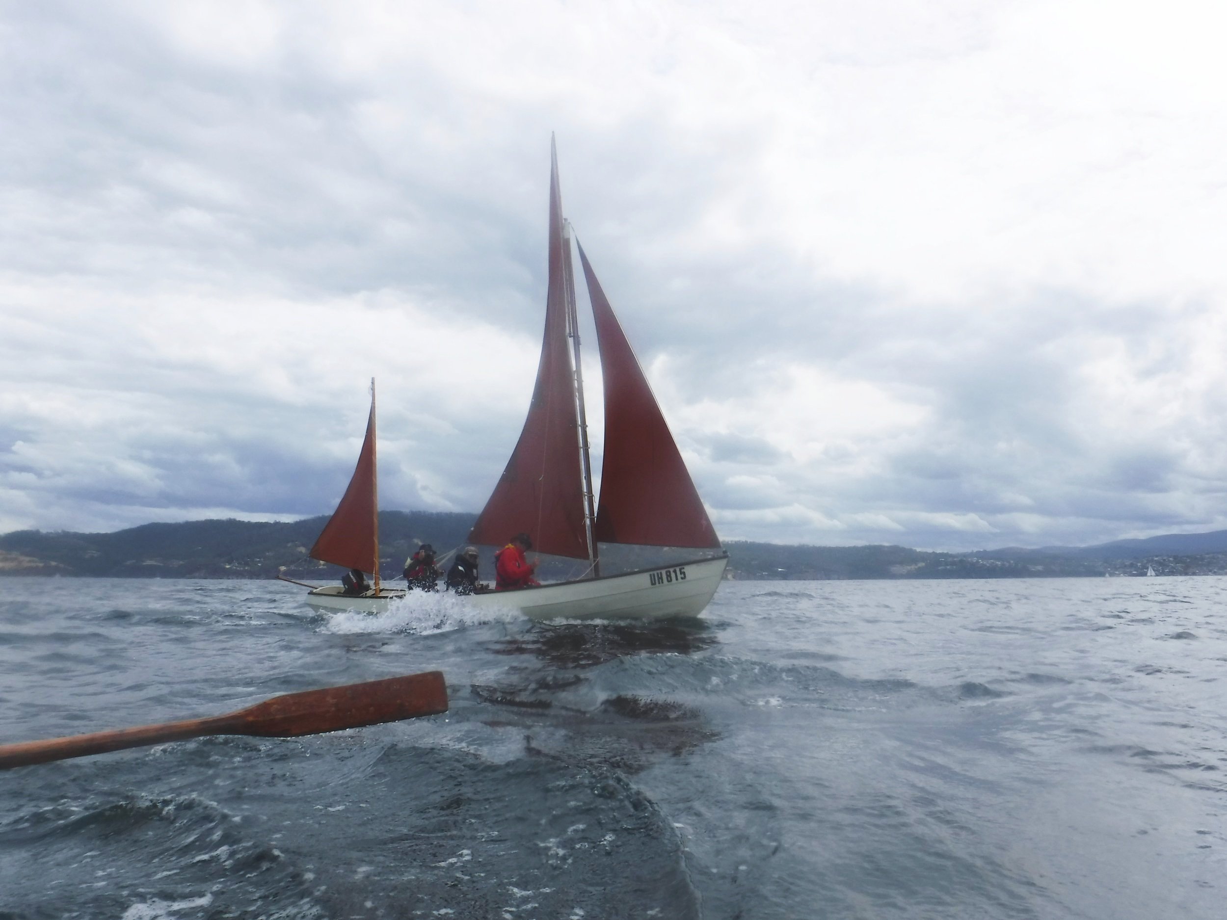 TN 23 is organised by the Living Boat Trust who are based in Franklin on the banks of the Huon River. You can join the raid by simply signing on as crew on one of the LBT whaleboats or St Isles Skiffs, or you can come as a privateer and bring your own craft. And so in the days leading up to the start the foreshore at Franklin became a hive as people began arriving with their trailered vessels. Rowing skiffs, longboats, day sailers for single, double or a crew of three, a couta boat with a crew of seven, a trimaran sailing kayak and a Warram cat. Wood, hemp, and varnish predominated.