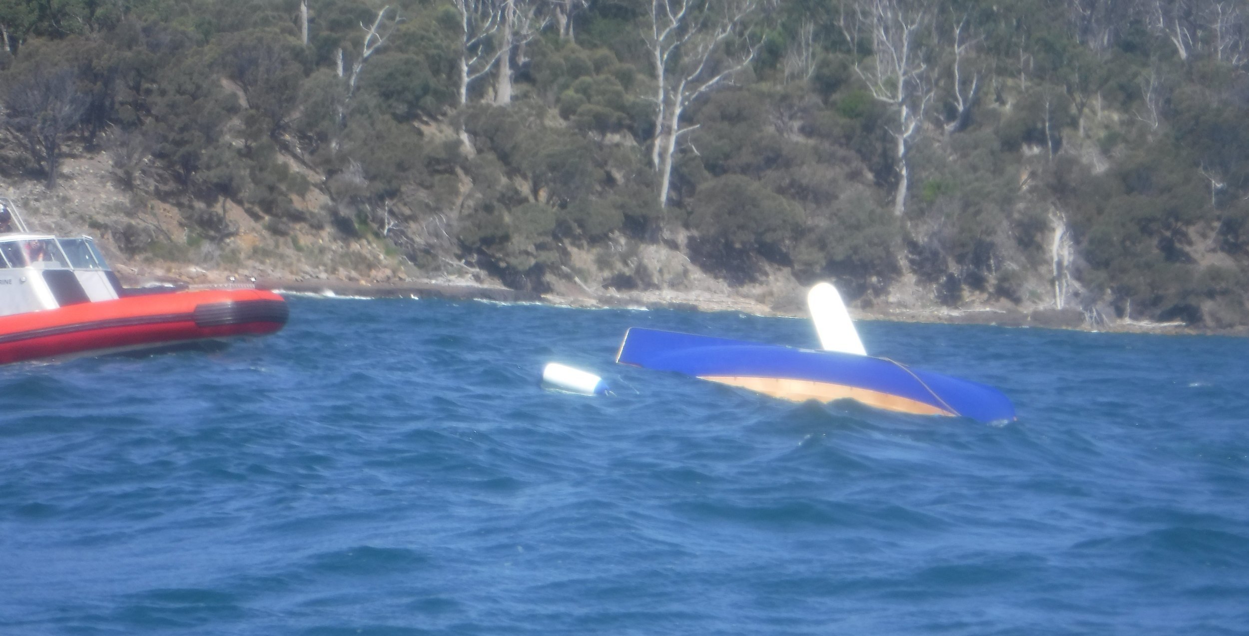 Day six. Dover to Simpsons Point on Bruny Island, 32km. Big swell. Big wind. A big day. In RowBob we had immense fun, surfing down 2m wave faces, barely a drop into the boat. We never felt the slightest concern but one of the rescue boats was obviously worried. They stayed close all day although they needn’t have bothered -those RIB’s are safe, very stable and have a big powerful motors. Score for the day was one capsize, one lost shoe and a drowned phone.