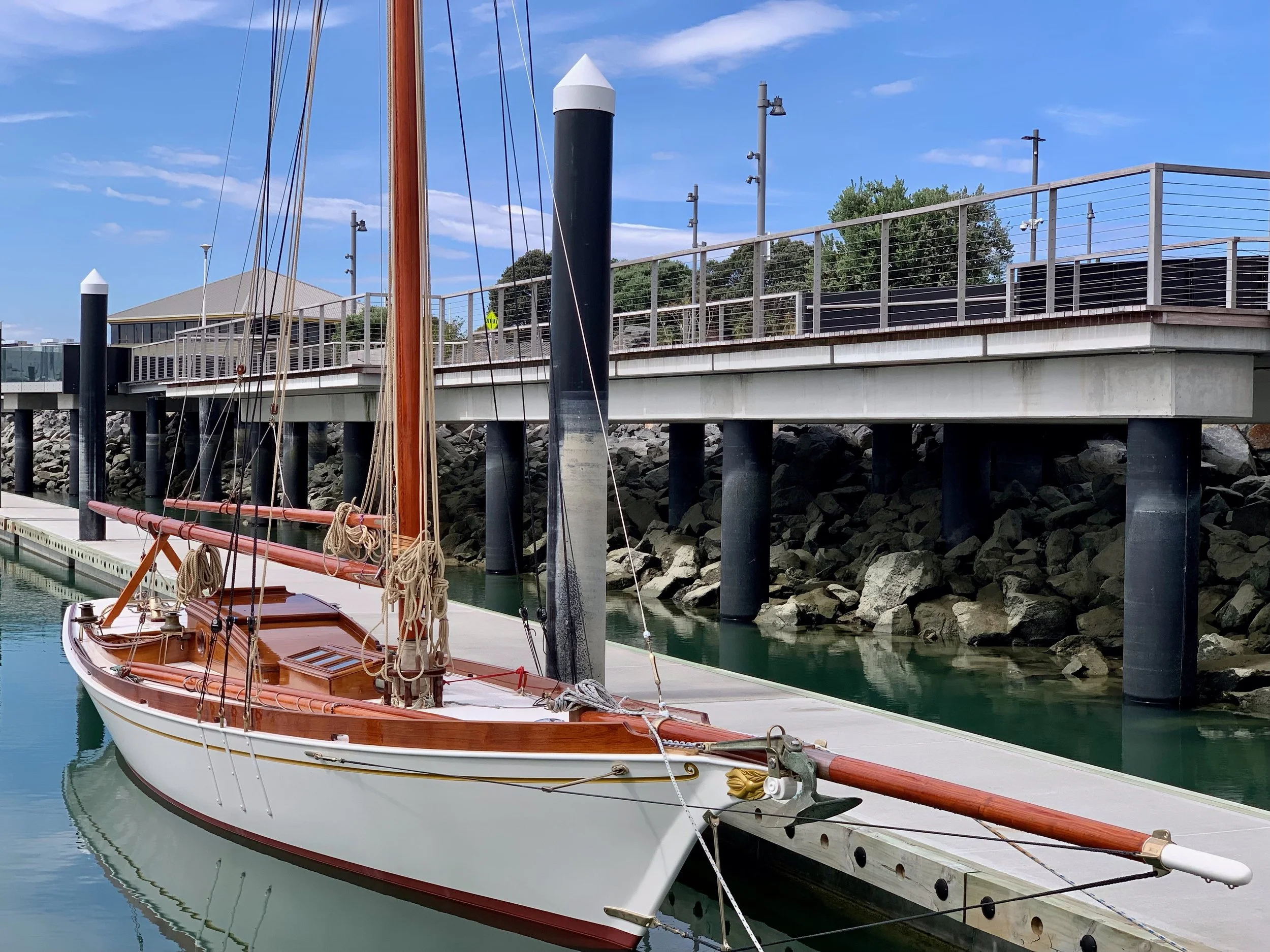 “After a 15-year off-and-on restoration, ROGUE is back in salt water at Auckland’s Westhaven, floating perfectly to her lines, and waiting the last of her rigging.”
