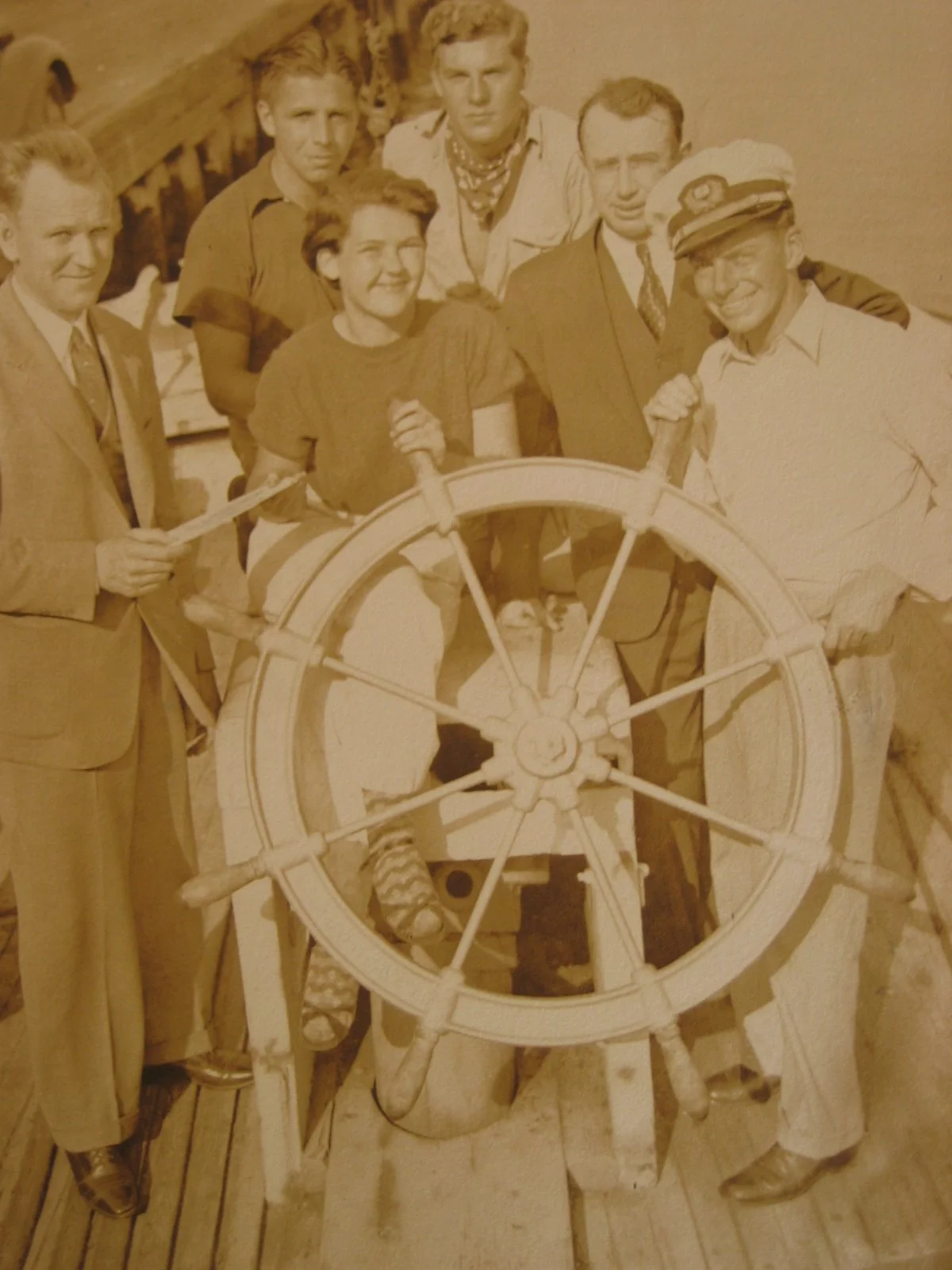 Captain Bailey (Pete) Sawyer was a master mariner growing up in Cape Cod Massachusetts after the first world war. He went to sea as a young man on merchant vessels travelling across the Pacific to Hong Kong and Helsinki through the Baltic. He enrolled in the New York Nautical School where training was on traditional square-rigged ships. After graduating in 1927 with a specialty in gyroscopic compass navigation, Pete made several arctic survey trips along the Labrador coast in a schooner called ARIEL where he was first officer and eventually the ships master.