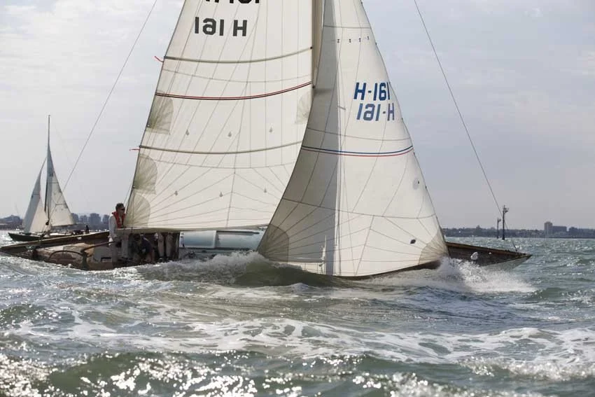 MERCEDES III won the line battle but it was the sight of the 1923 50ft tops'l rigged ACROSPIRE III being thrown about like a dinghy that held the Race Committee's attention. The MIII skipper with his peripheral vision on full alert, held off till the very last moment before being overlapped and conceding the start line by a very small drop off angle to ACK.