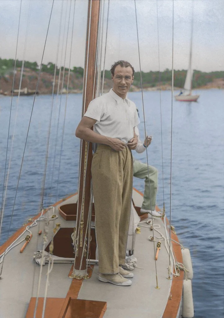 KNUD REIMERS on an INTERNATIONAL 5m. Photo OSCAR NORBERG 1937