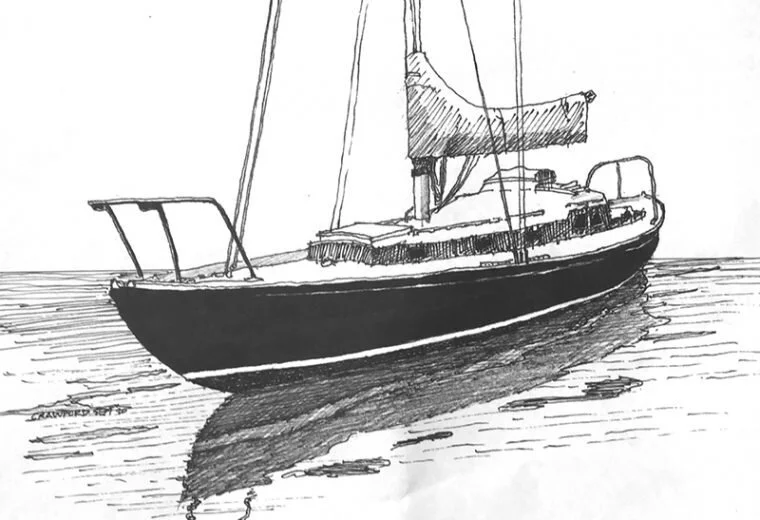 CELESTE was designed by the Danish naval architect, Knud Reimers, with a reputation for producing fast Metre Boats. Celeste has the lines of a 30 square metre yacht shortened 40 to 34 ft. Her under-body shape is pure Metre Boat and her rig is that of a 30 square. Reimers was a believer in composite construction giving a planked hull over a metal frame.
