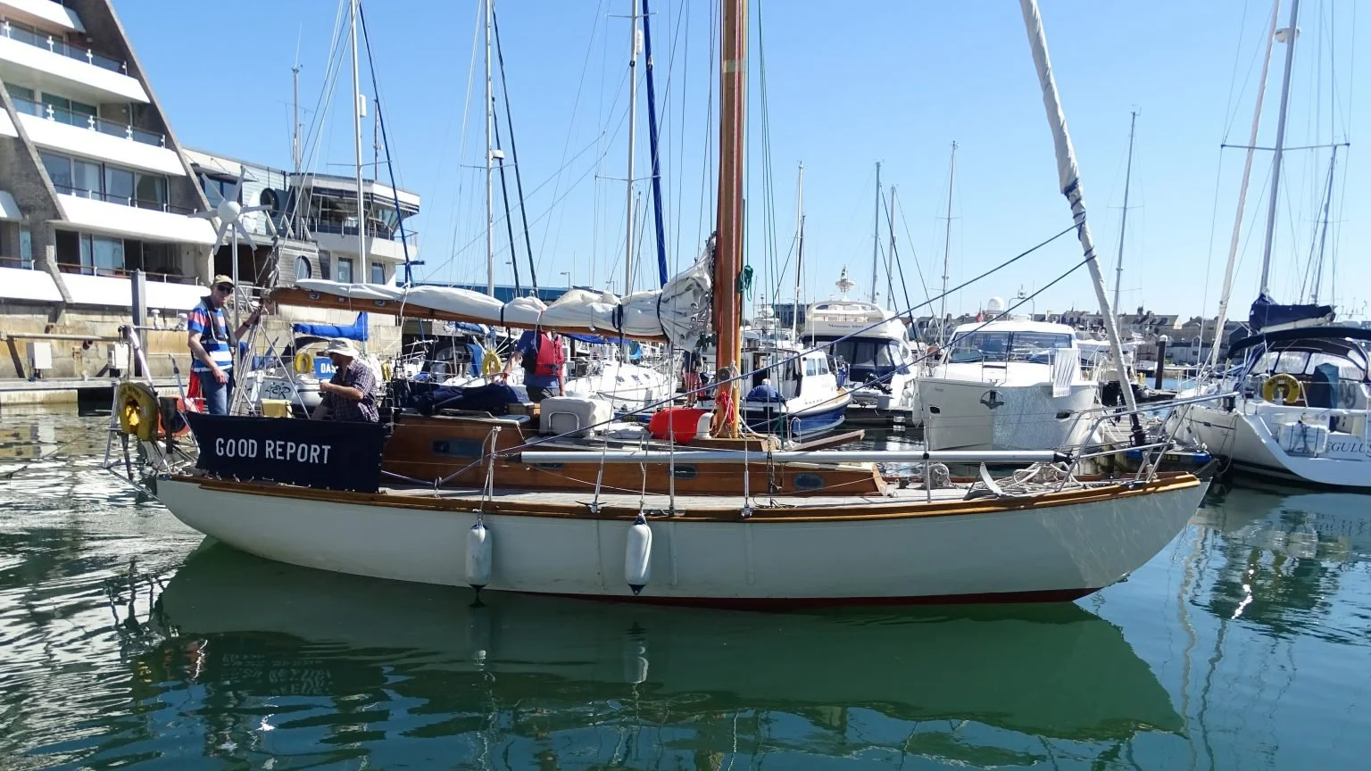 George Arnison, the skipper of the 30ft wooden sloop, Good Report has received the Ocean Cruising Club Seamanship Award. Credit: John Willis