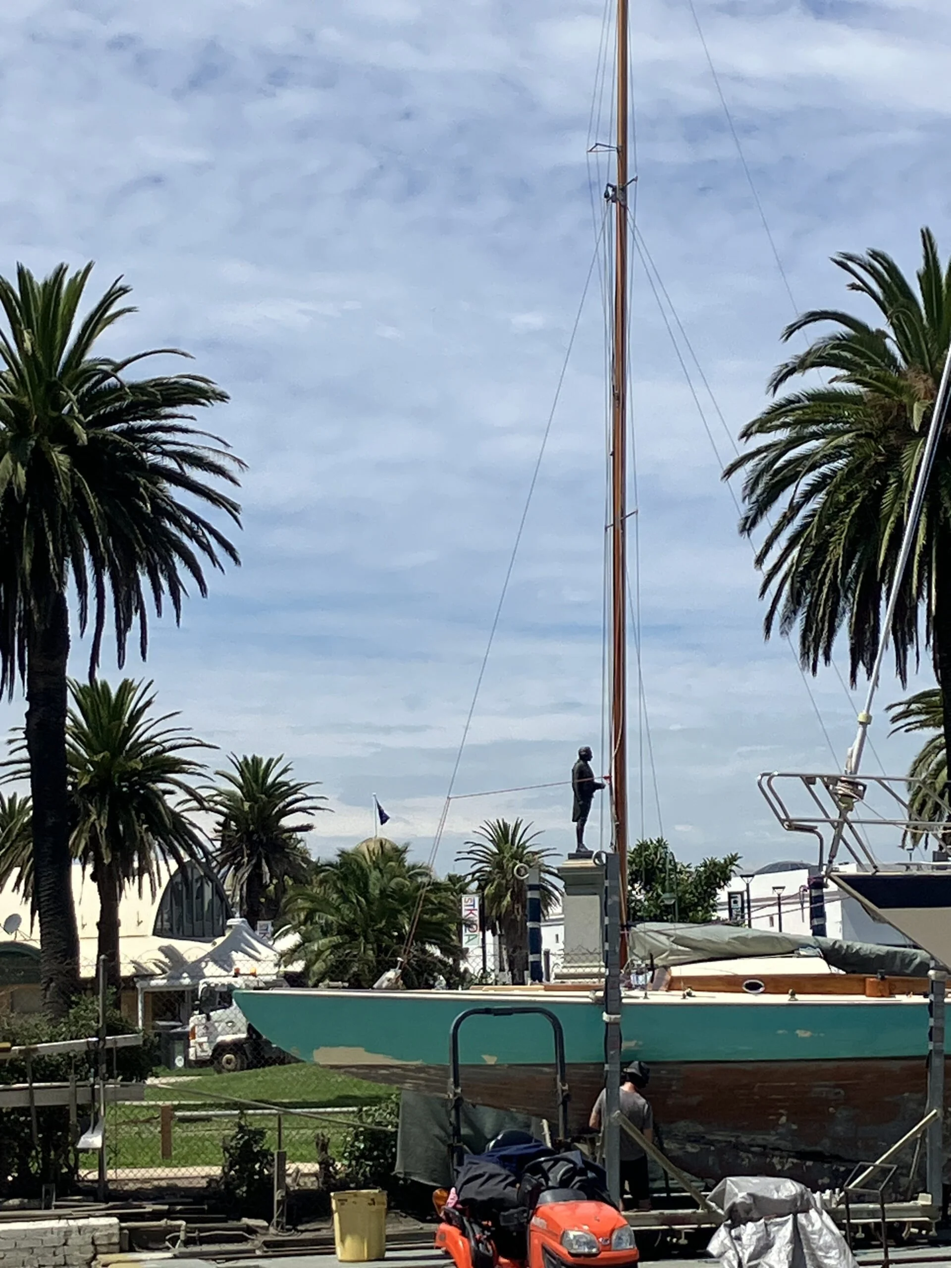 Lieutenant Cook inspects the halyards on Tumlaren YVONNE the week before his demise. Photo- Roger Dundas