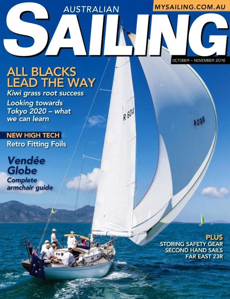 Her first owner was a Olympic Star Class racing sailor, who only owned her a few years before passing her onto a Mr Rockwell who owned her for about three decades, crossing the Atlantic four times, (transiting the Panama Canal) and eventually sailing across the Pacific to New Zealand where he sold her in the 1990’s. We bought her just after the turn of the Century, in Auckland and sailed her back to her new home port of Melbourne in 12 days, crossing the Tasman, transiting Bass Strait, learning to love her as we went. (Click to enlarge the two “Australian Sailing” Covers featuring FAIR WINDS)