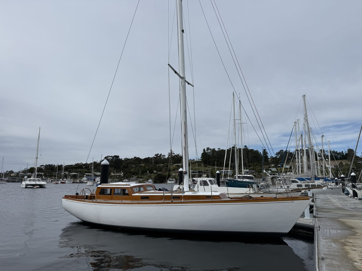 Tradition was the last boat built at Creese's Boatyard in Battery Point in 1984, strip planked out of Huon Pine. She has just been fully restored by the Tasmanian Shipwrights &Co with the specific aim of competing in the double handed division of the 80th S2H