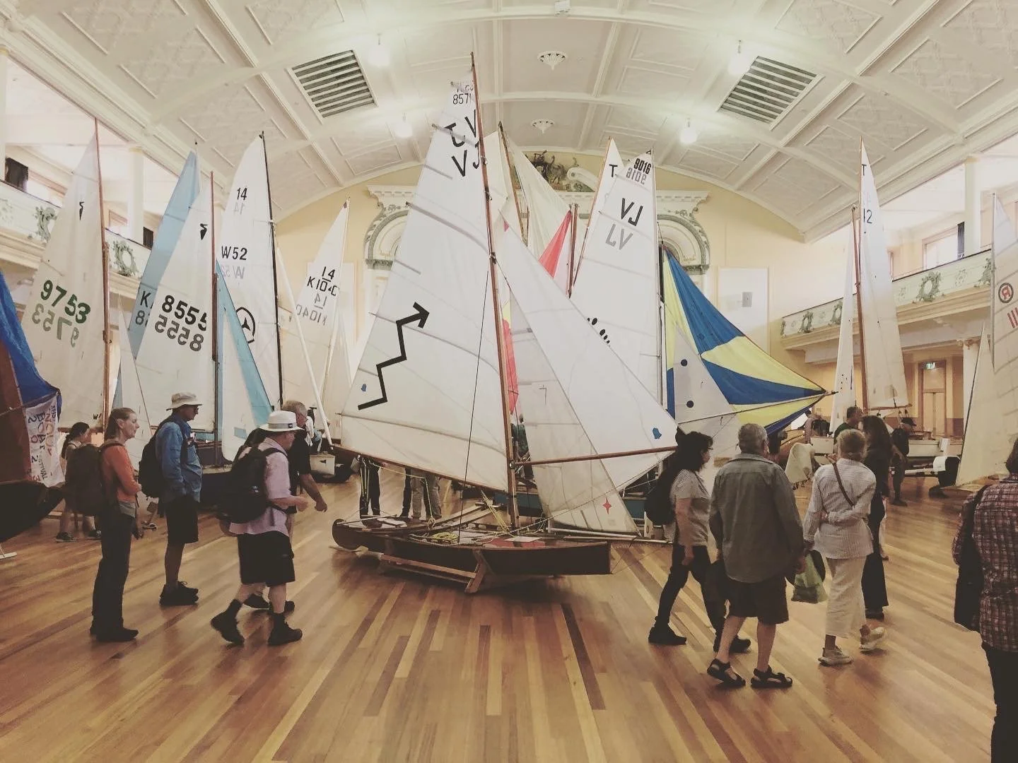 The City Hall dinghy display at the 2023 AWBF with VJs in foreground.