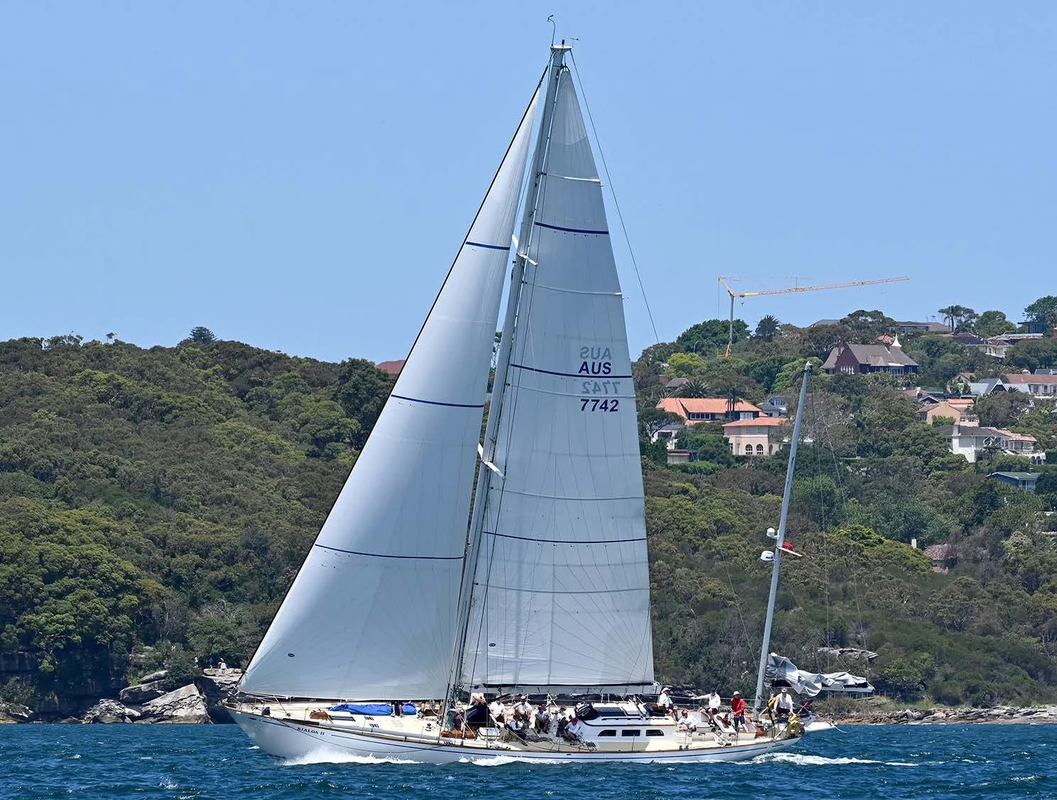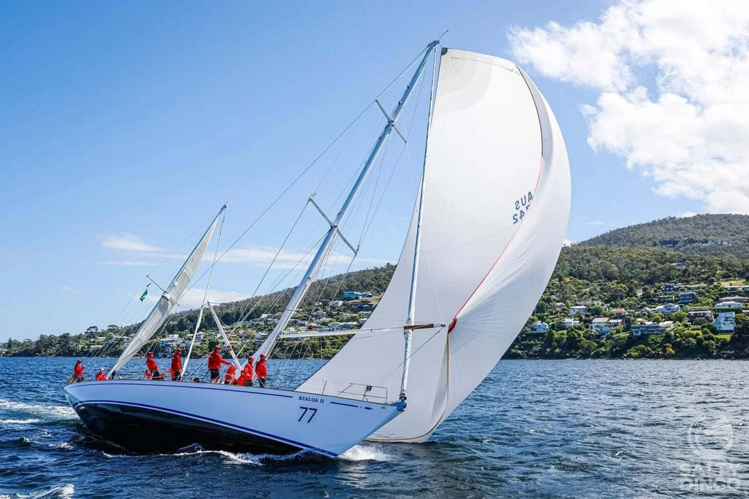 Kialoa II is a true beauty, initially designed as a sloop in 1963 by Sparkman & Stephens for the American yachtsman Jim Kilroy as a part of the decade’s long Kialoa program. A defining feature of Kialoa II was her aluminium construction, a significant step away from the typically wooden construction of her rivals at the time. At 73 ft long, she was one of the first purpose-built ocean racing maxis and toured the globe winning most major ocean races at least once, the most notable of these was perhaps the 1965 Transpac line honours in nine days and 19 hours. After being converted in 1968 to her current yawl configuration, she came to Australia for a single Sydney to Hobart start — a reportedly gruelling upwind race in 1971, taking line honours in three days, 12 hours and 46 minutes.