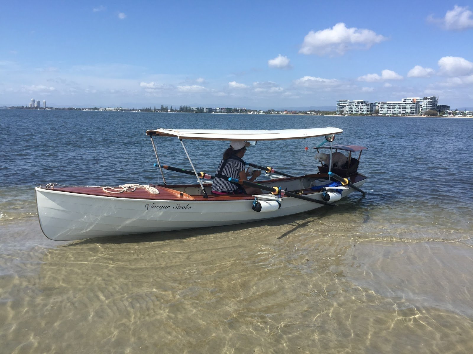 I hate to disappoint as VINEGAR STROKE has a following of people that run along the shores of our local passages waving in delight that someone in a sea of plastic, ‘guppy shaped’ stink boats & Jet Ski is actually rowing…. It’s a fine line indeed.