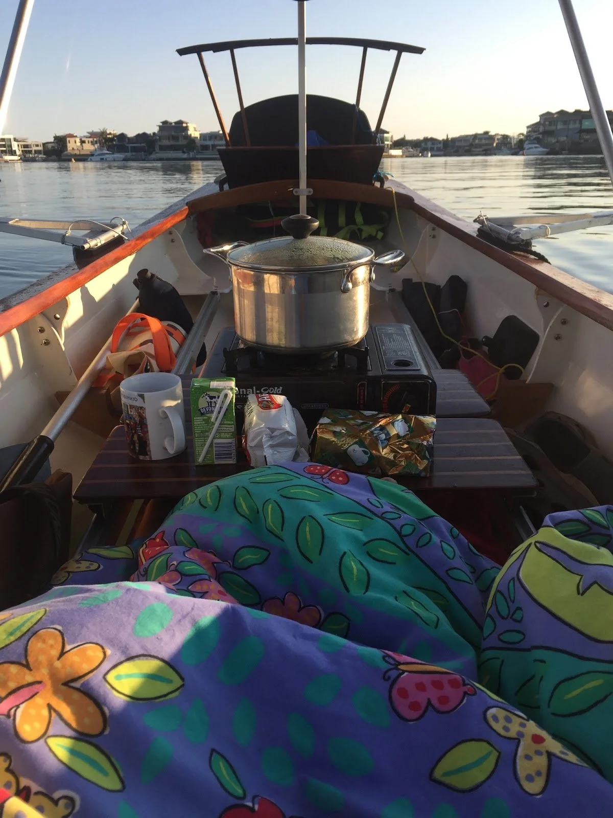 Before the Lids I wanted to sail as well as row but the Lids have made this problematic. I wanted to join the ranks of countless Raiders, Inshoremen, ‘pre Moth’ canoe sailors and Camp Cruising Explorers that have gone before me. Unfortunately, in such a developed space it just wasn't going to happen. And I didn't want to loose all the advantages that have come with rowing & sleeping under a ‘hard top’.