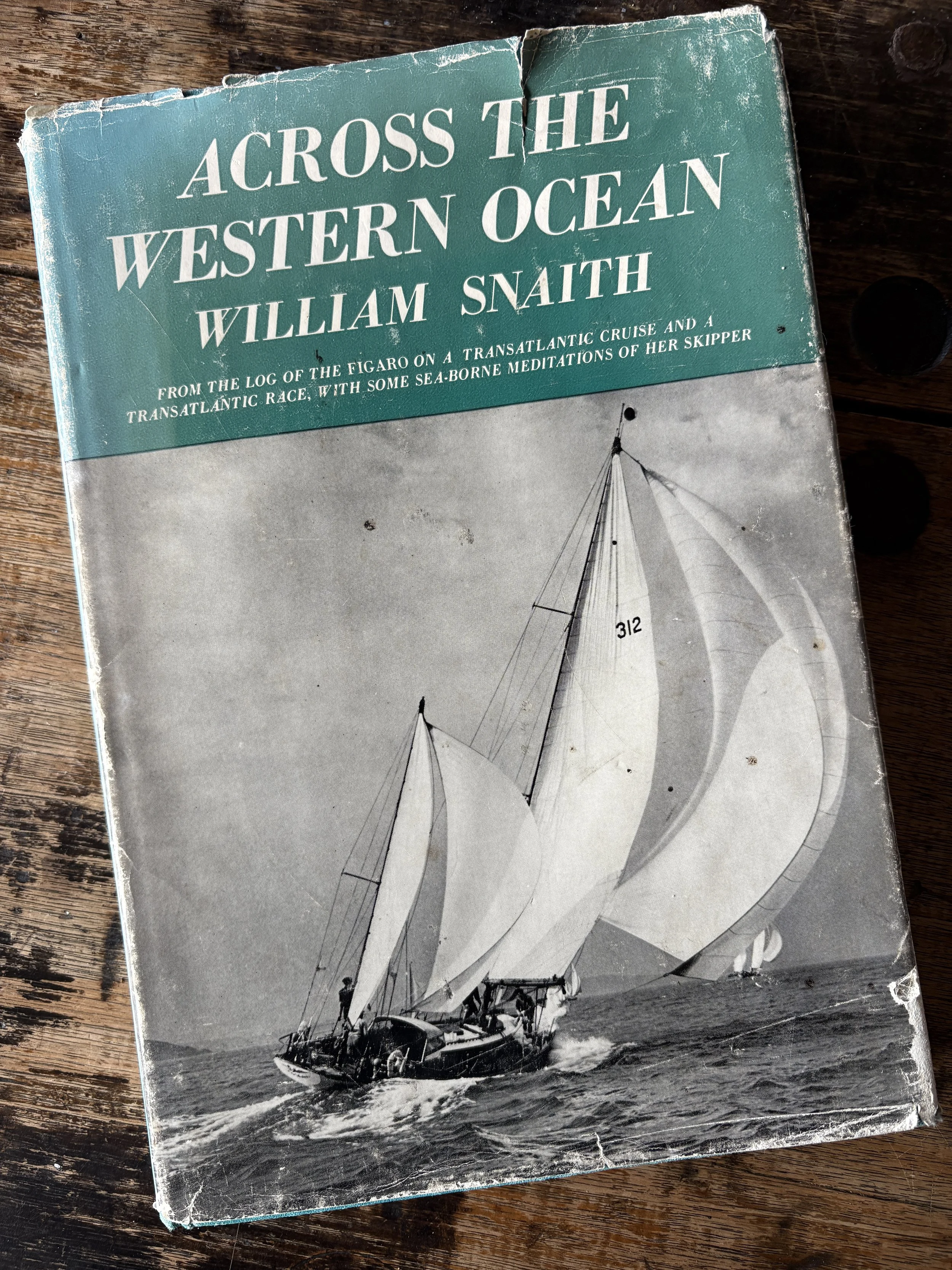 William Snaith builds his book , “Across the Western Ocean” around the log of the centre board yawl FIGARO as she races across the Atlantic in 1961. He writes so beautifully, with the confidence of another era. I feel and smell and hear every nuance in the script. Over two decades, Snaith owned and captained a series of yachts of the same name, achieving significant success in competitive sailing, including winning the 1965 Southern Ocean Racing Conference series and participating in the 1967 Admiral’s Cup in England. But I would argue that his most important legacy is in the two books he left us. “Across the Western Ocean” (1966) & “On the Wind’s Way” (1973). The Passage below is from the opening Chapter of the former.