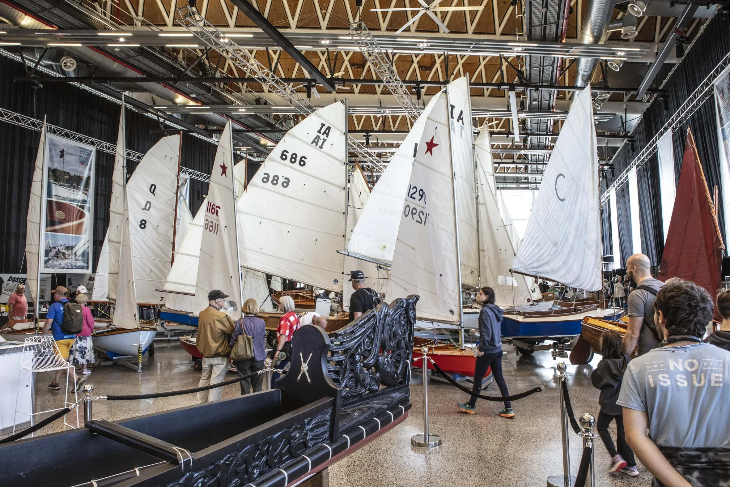 Ninety boats ended up in this precinct. And It’s here that the festival is enriched beyond the no longer accurate cliche of “rich, white, males owning expensive yachts”, into a broad based cultural presentation of what timber boats have meant to the New Zealand community and why they are still so relevant. In addition to the scores of classic dinghies, canoes and runabouts the space is filled with intricate exhibits such as the one by The Daring Trust, telling the incredible story of The DARING, a two masted schooner built in 1863. After being beached purposefully by Captain Phipps and his crew in 1865 this beautiful boat was discovered after a weather event in 2018 moved the sands to expose her near Muriwai in Auckland. She is now being preserved to make her available for a public display telling stories of the life and culture of the days when she was a trading the coastlines of Aotearoa.